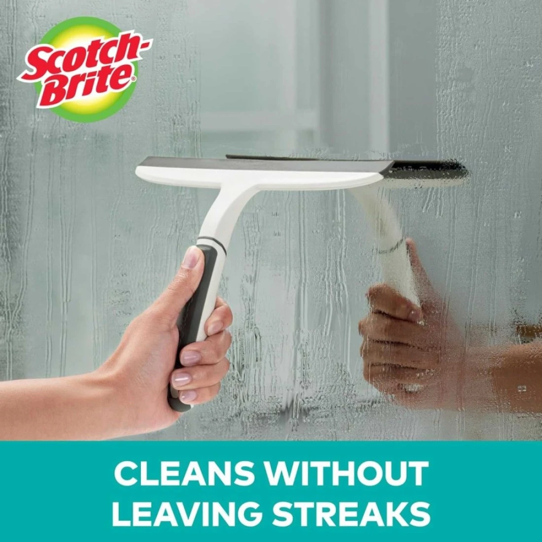 Clean your mirrors and shower doors with no left-behind streaks using the Scotch-Brite Dual Blade Squeegee.