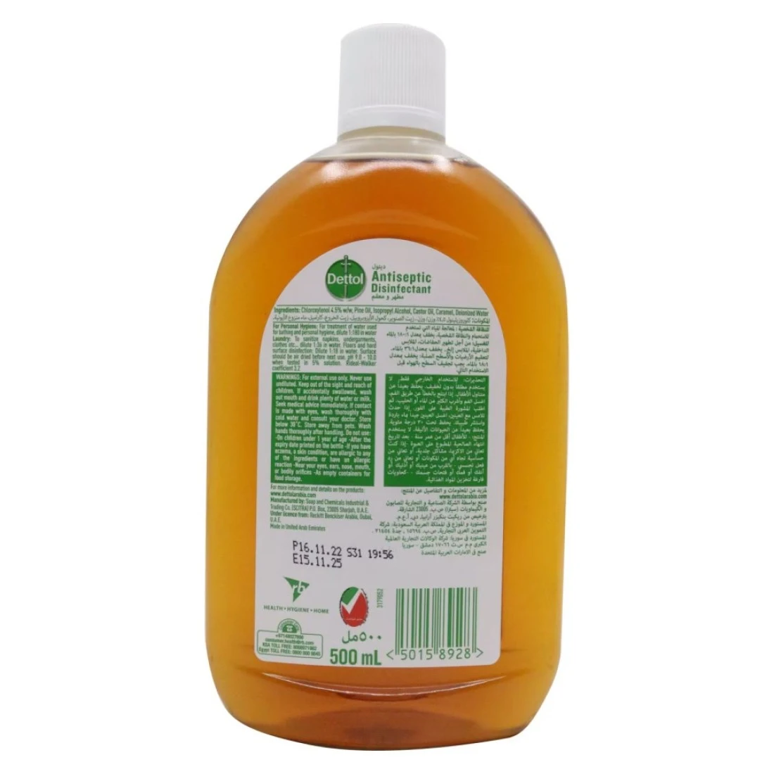 ingredients : Chloroxylenol 4.85%, Pine Oil, Isopropyl Alcohol, Castor Oil, Caramel Deionized Water