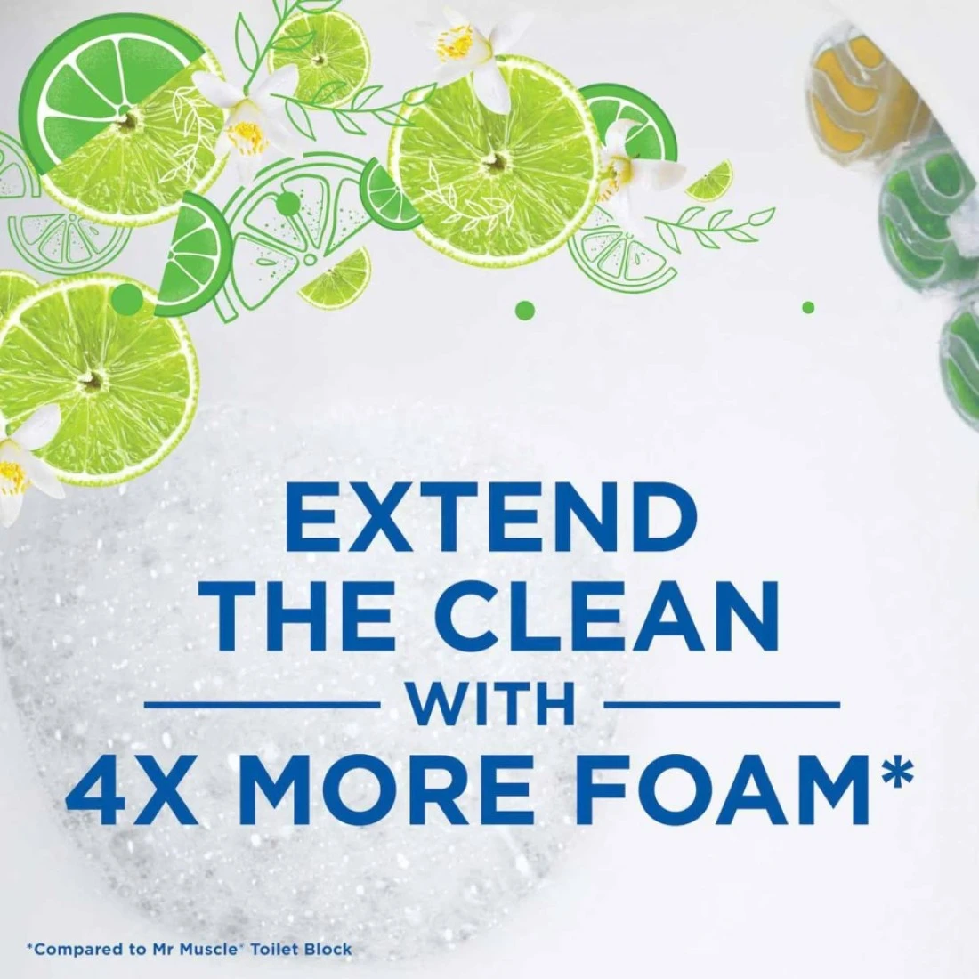 - Extend the clean with 4x more foam versus Mr Muscle Toilet Block