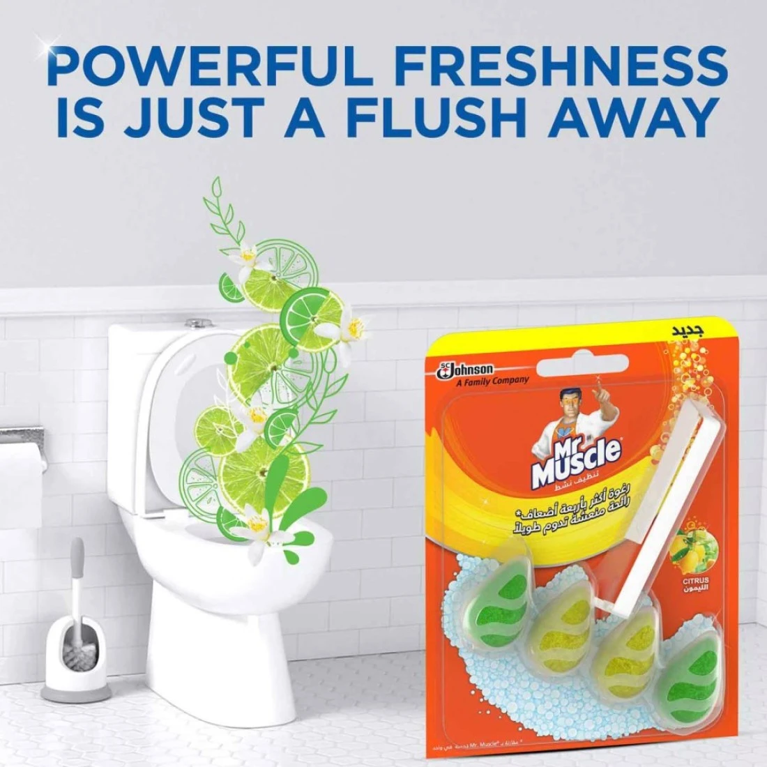 Mr Muscle Active Clean gives your toilet a renewed freshness with every flush. Once you place it under the rim of your toilet bowl the product turns every flush into a foamy fresh rush of bubbles keeping your toilet clean and fragrant. Pack includes 1 Active Clean product contained in a packaging blister.