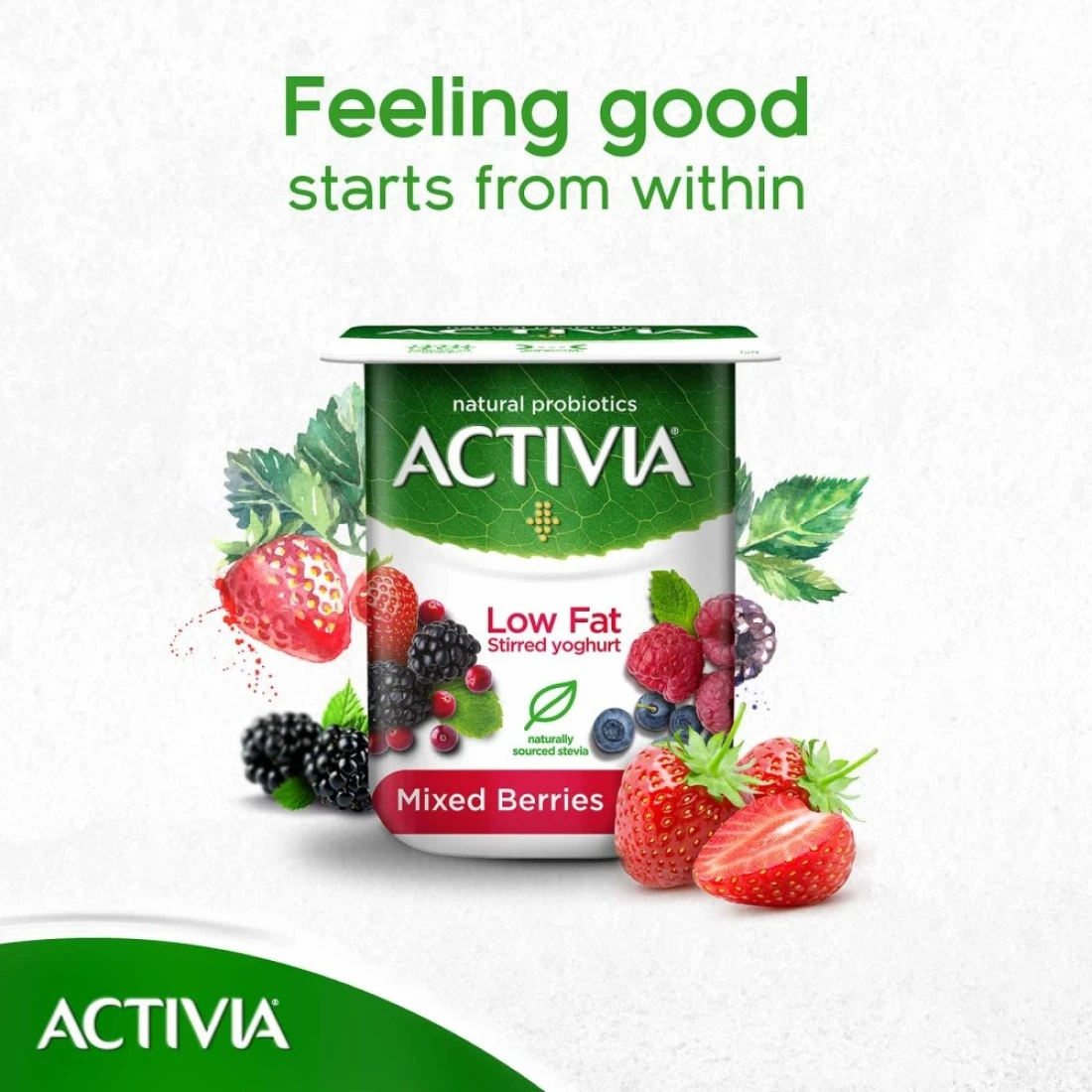- Feel good from within by kick-starting your day with Activia Mixed Berries low-fat stirred yoghurt