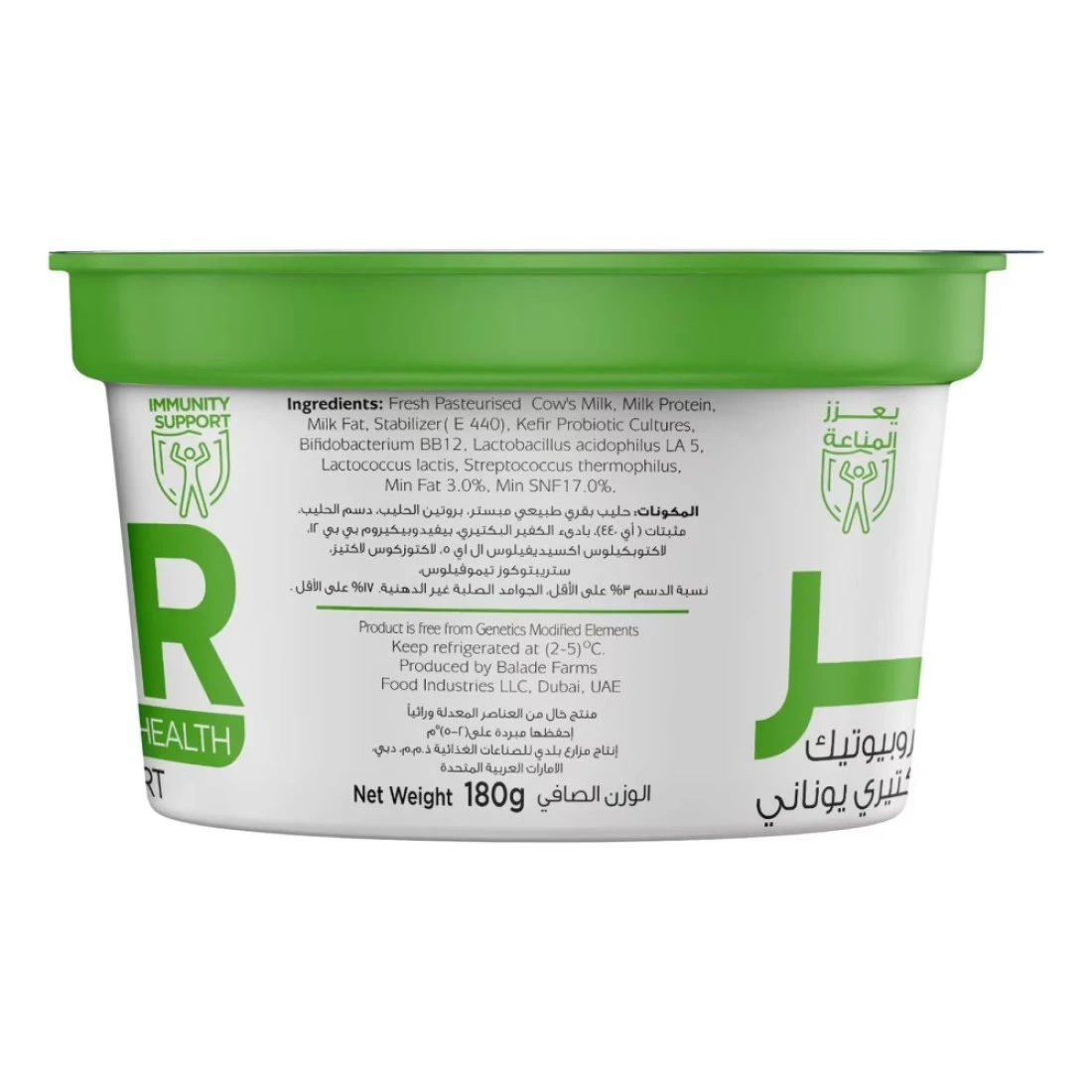 Balade Farms Protein Kefir Gut Health Probiotic Cultured Greek Yogurt is a nutritious and delicious dairy product designed to support digestive health. Each 180g serving is packed with protein and contains live probiotic cultures that promote gut wellness. This creamy yogurt is crafted from high-quality ingredients, offering a rich flavour and smooth texture, making it an ideal snack or addition to meals. With its focus on gut health, Balade Farms Protein Kefir is perfect for those looking to enhance their diet with beneficial probiotics while enjoying a tasty treat.