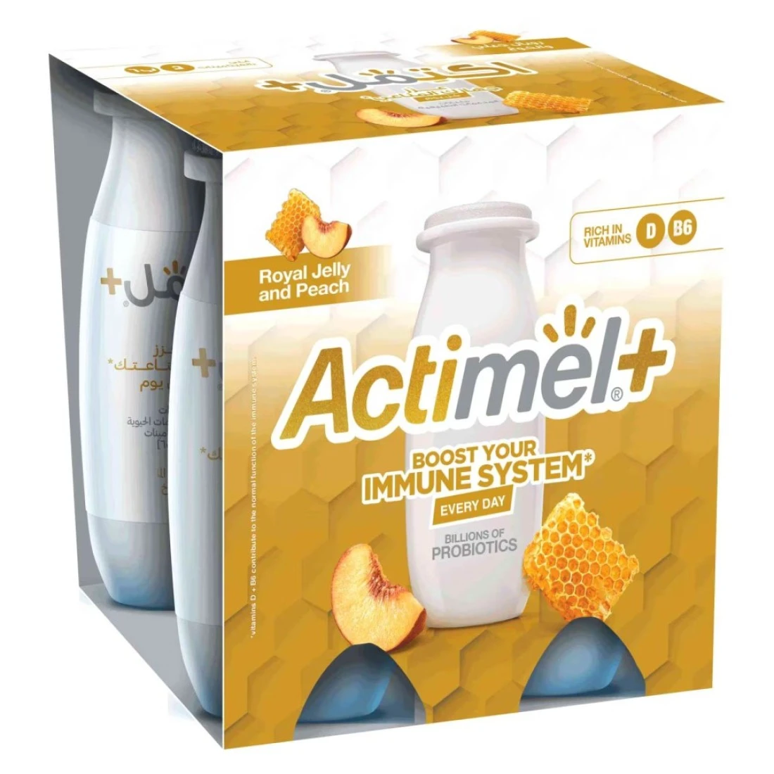 Actimel Probiotic Dairy Drink Royal Jelly and Peach 93ml Pack of 4