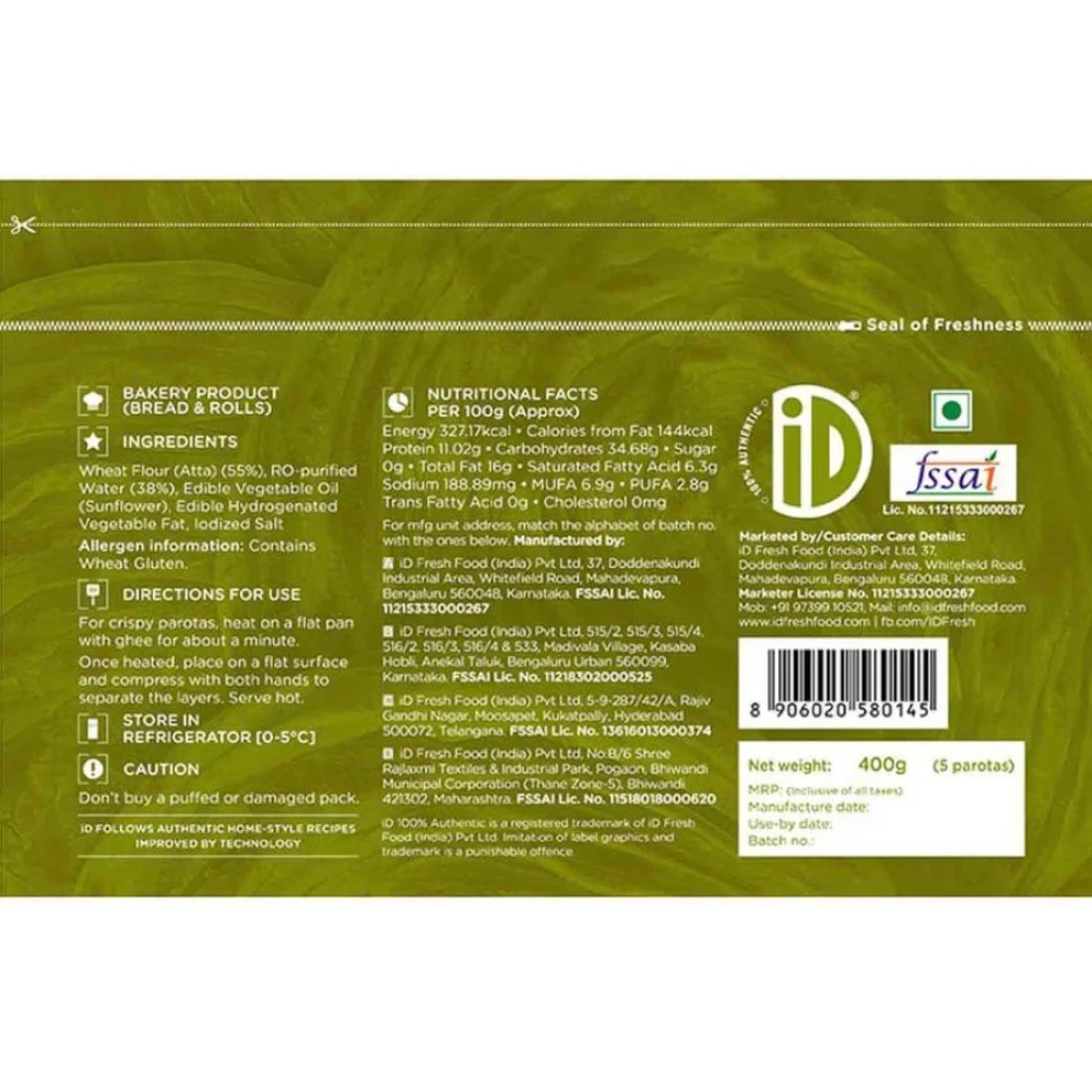 iD Whole Wheat Parota 400g