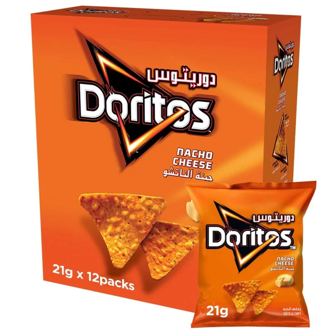 Doritos Nacho Cheese is a popular snack that is loved by people of all ages. With its bold and cheesy flavour, it is the perfect treat for any occasion. Whether you are watching a movie, having a party, or just craving a tasty snack, Doritos Nacho Cheese is the go-to choice. This pack of 12 21g bags is perfect for sharing with friends and family. Each bag is packed with crispy and crunchy nacho cheese-flavoured chips that will leave you wanting more. The convenient size of the bags makes it easy to take them on the go, so you can enjoy Doritos Nacho Cheese anytime, anywhere. Experience the ultimate snacking pleasure with Doritos Nacho Cheese. The combination of the savoury nacho cheese flavour and the satisfying crunch of the chips is simply irresistible. Treat yourself to a pack of 12 21g bags and indulge in the deliciousness of Doritos Nacho Cheese today.