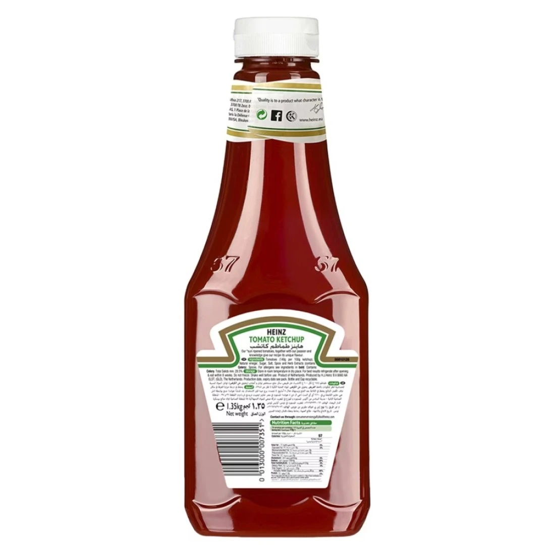 Heinz Tomato Ketchup 1350g is a classic condiment that adds a burst of flavour to any dish. Made with ripe tomatoes and a blend of spices, this ketchup is the perfect accompaniment to burgers, hot dogs, and fries. Its rich and tangy taste will leave you wanting more. With its convenient 1350g size, Heinz Tomato Ketchup is perfect for families or gatherings. Whether you're hosting a barbecue or simply enjoying a meal at home, this ketchup is sure to be a hit. Its iconic red bottle and easy-to-use squeeze cap make it a staple in kitchens around the world. Not only does Heinz Tomato Ketchup taste great, but it's also made with high-quality ingredients. It's gluten-free, contains no artificial colours or flavours, and is made with 100% natural ingredients. So you can feel good about adding this delicious ketchup to your favourite dishes.