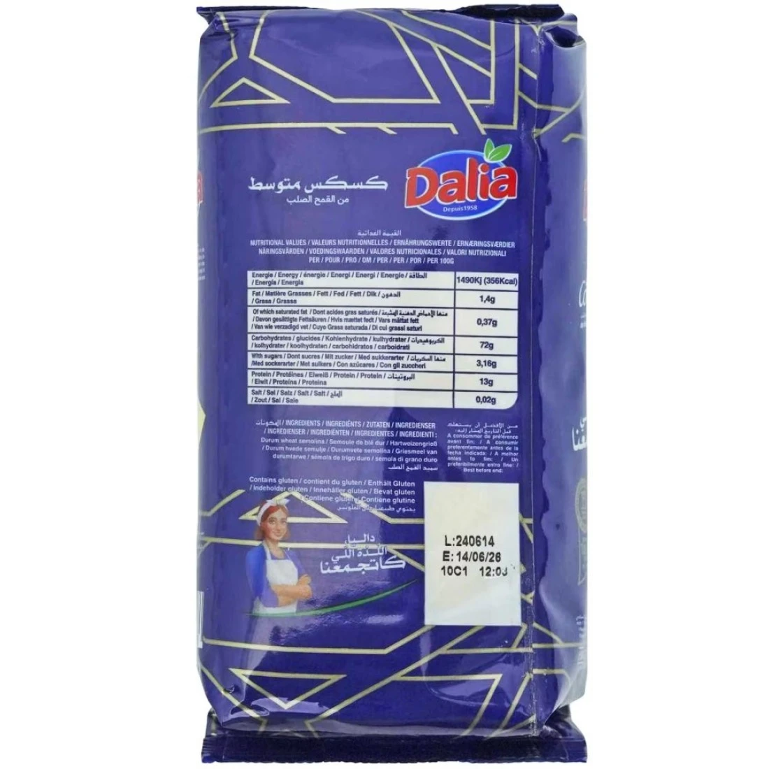 Dalia Couscous is a versatile and convenient food product made from durum wheat semolina. This 1kg pack of couscous is a popular staple in many cultures and can be cooked in a variety of ways. It is quick and easy to prepare making it perfect for busy individuals or families. Whether used as a side dish main course or in salads Dalia Couscous is a delicious and nutritious addition to any meal. Its light and fluffy texture pairs well with a range of flavours and ingredients making it a versatile ingredient in various culinary creations.