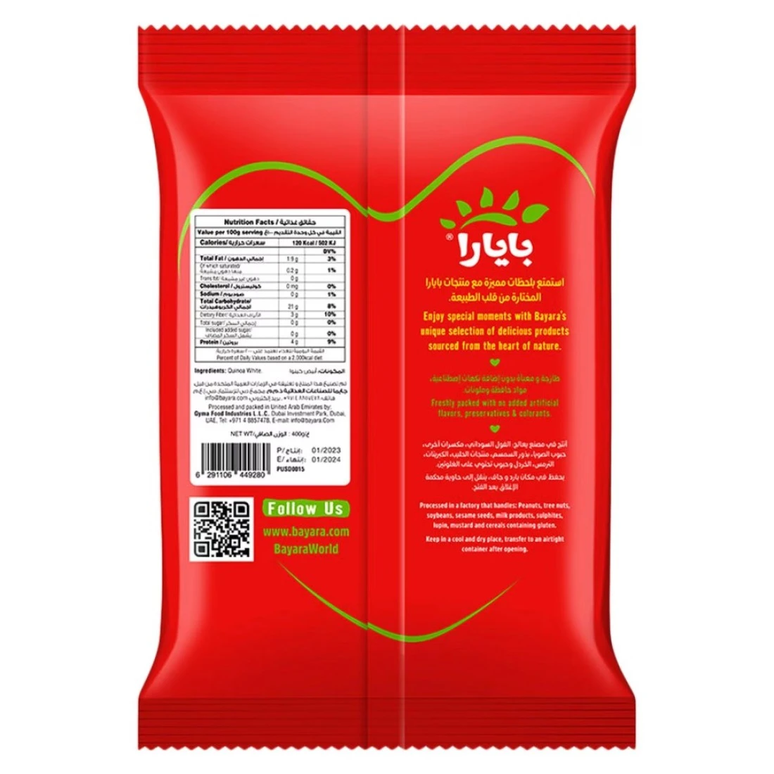 - Each pack contains 400 grams of Bayara White Quinoa, perfect for multiple servings