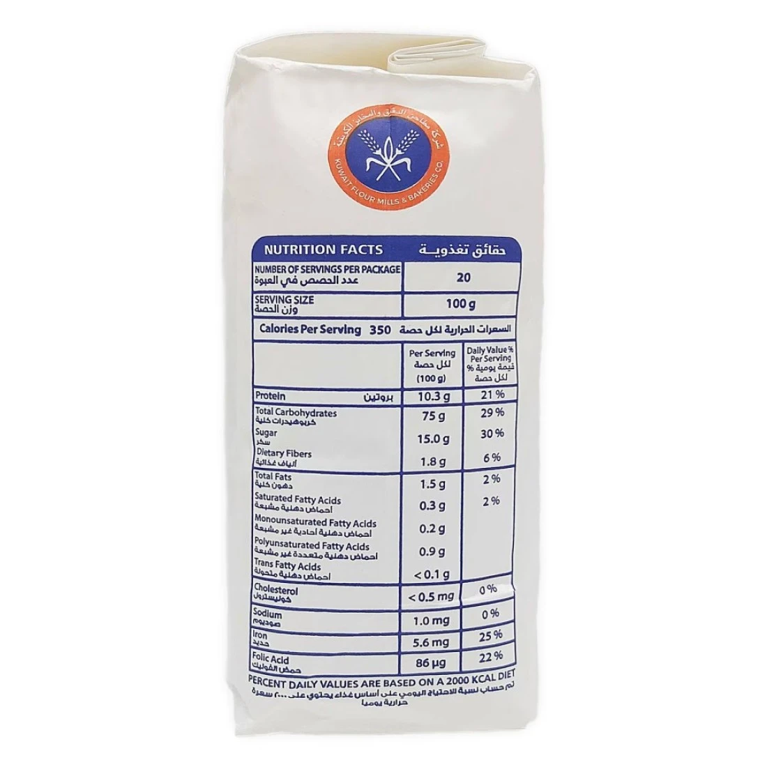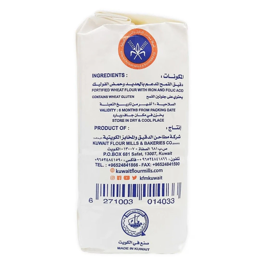 Kuwait Flour's Patent Flour is a high-quality flour that is perfect for all your baking needs. It is made from finely milled wheat and has a low protein content, making it ideal for recipes that require a delicate texture and a light, fluffy result. The flour is carefully crafted to ensure consistent performance and excellent baking results every time. Whether you're making cakes, bread, pastries, or anything in between, Kuwait Flour's Patent Flour will help you achieve professional-quality results. The 2kg packaging is convenient for home use and ensures that your flour stays fresh for longer. Elevate your baking game with Kuwait Flour's Patent Flour.