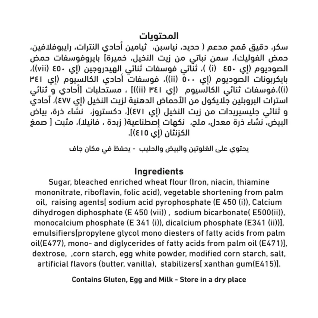 The Al Alali Ultra Moist French Vanilla Cake Mix is a convenient and delicious option for baking a rich and flavourful vanilla cake. This mix contains all the necessary ingredients to make a moist and fluffy cake including flour sugar baking powder and vanilla flavouring. Simply add eggs oil and water to the mix and you'll have a homemade cake in no time. The result is a golden and velvety cake with a delicate vanilla aroma. Whether you're baking for a special occasion or just craving a sweet treat this French Vanilla Cake Mix is sure to satisfy.