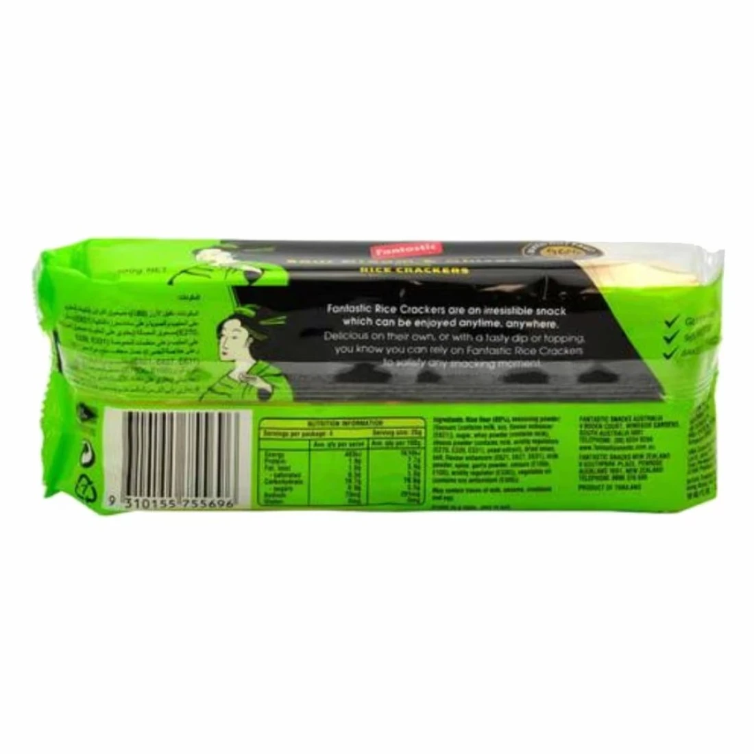 Fantastic Sour Cream and Chives Flavour Rice Crackers are a delicious option for a crunchy and flavourful snack. These rice crackers are packed with the tangy taste of sour cream and chives making them a great choice for those looking for a savoury treat. Whether enjoyed on their own or paired with your favourite dip these rice crackers are sure to satisfy your snack cravings. Made with high-quality ingredients and free from artificial flavours Fantastic® Sour Cream and Chives Flavour Rice Crackers are a tasty and guilt-free snack option.