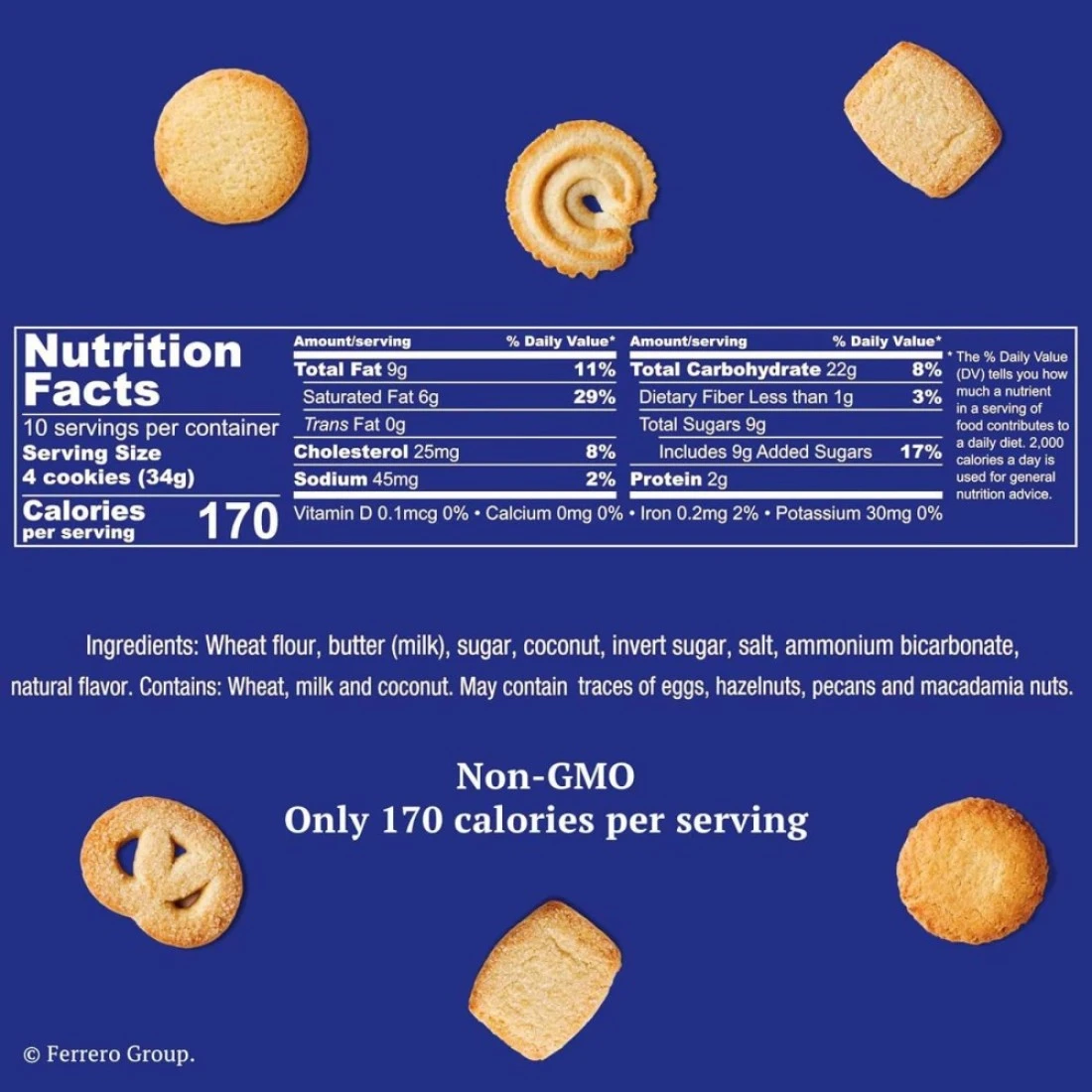 ingredients : Wheat Flour, Butter 28%, Sugar, Desiccated Coconut, Invert Sugar, Table Salt, Raising Agent (ammonium Hydrogen Carbonate), Natural Flavour