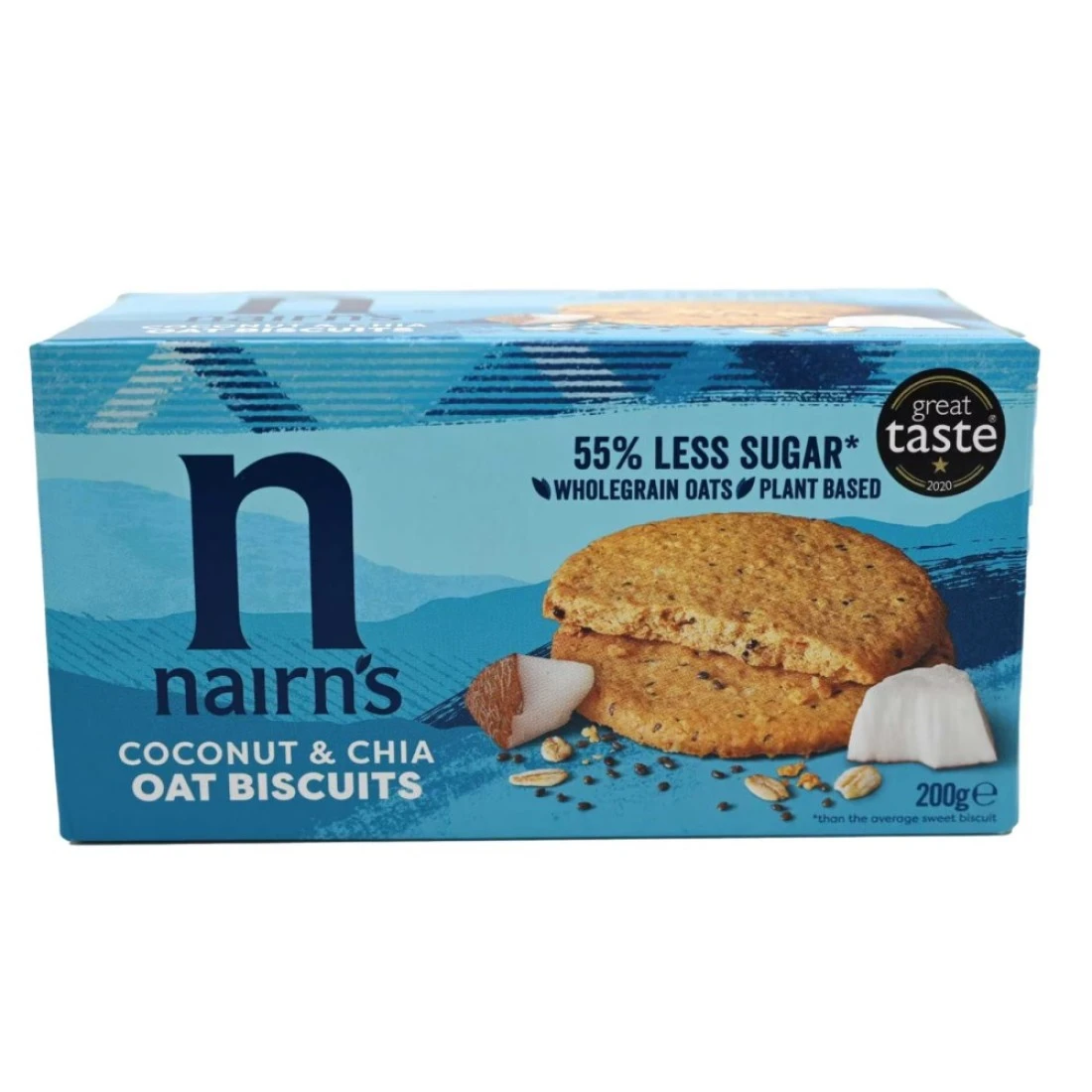 Nairn's Coconut and Chia Oat Biscuits are a delicious and nutritious snack option. Made with whole grain oats coconut and chia seeds these biscuits are packed with natural flavour and goodness. They are free from artificial colours flavours and preservatives making them a great choice for those with dietary restrictions. Perfect for enjoying with a cup of tea or coffee these biscuits are a tasty treat you can feel good about indulging in.