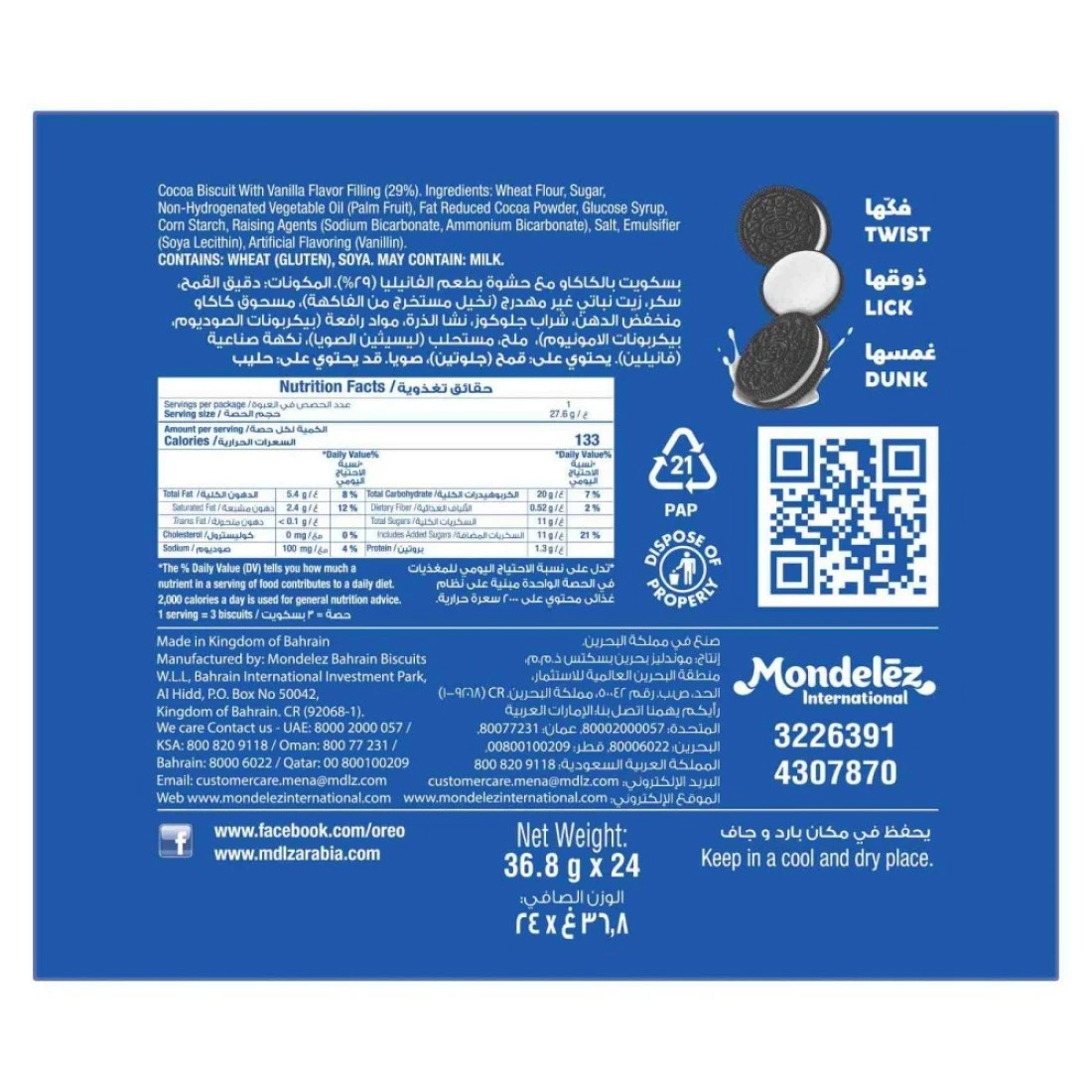 Oreo Original Cookies Extra Large Value Pack, 36.8g Pack of 24