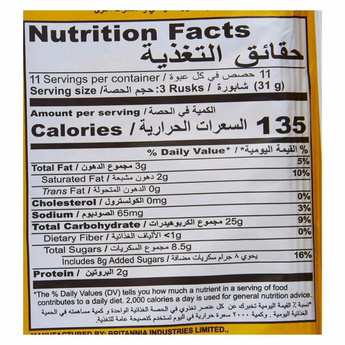 Britannia Toastea Wheat Rusk is a crispy and crunchy snack made from wheat that is perfect for tea time. This pack contains 3 packs of 30.5g each, making it ideal for sharing with family and friends. Enjoy the delicious taste and texture of these rusks with your favourite hot beverage.