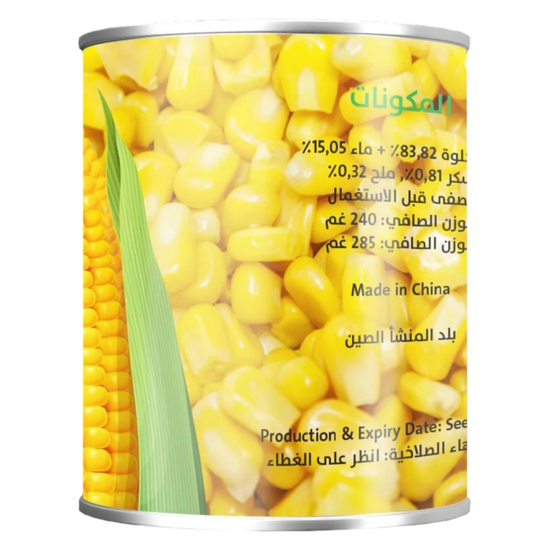 ingredients : Sweet Corn 83.82%, Water 15.05%, Sugar 0.81%, Salt 0.32%