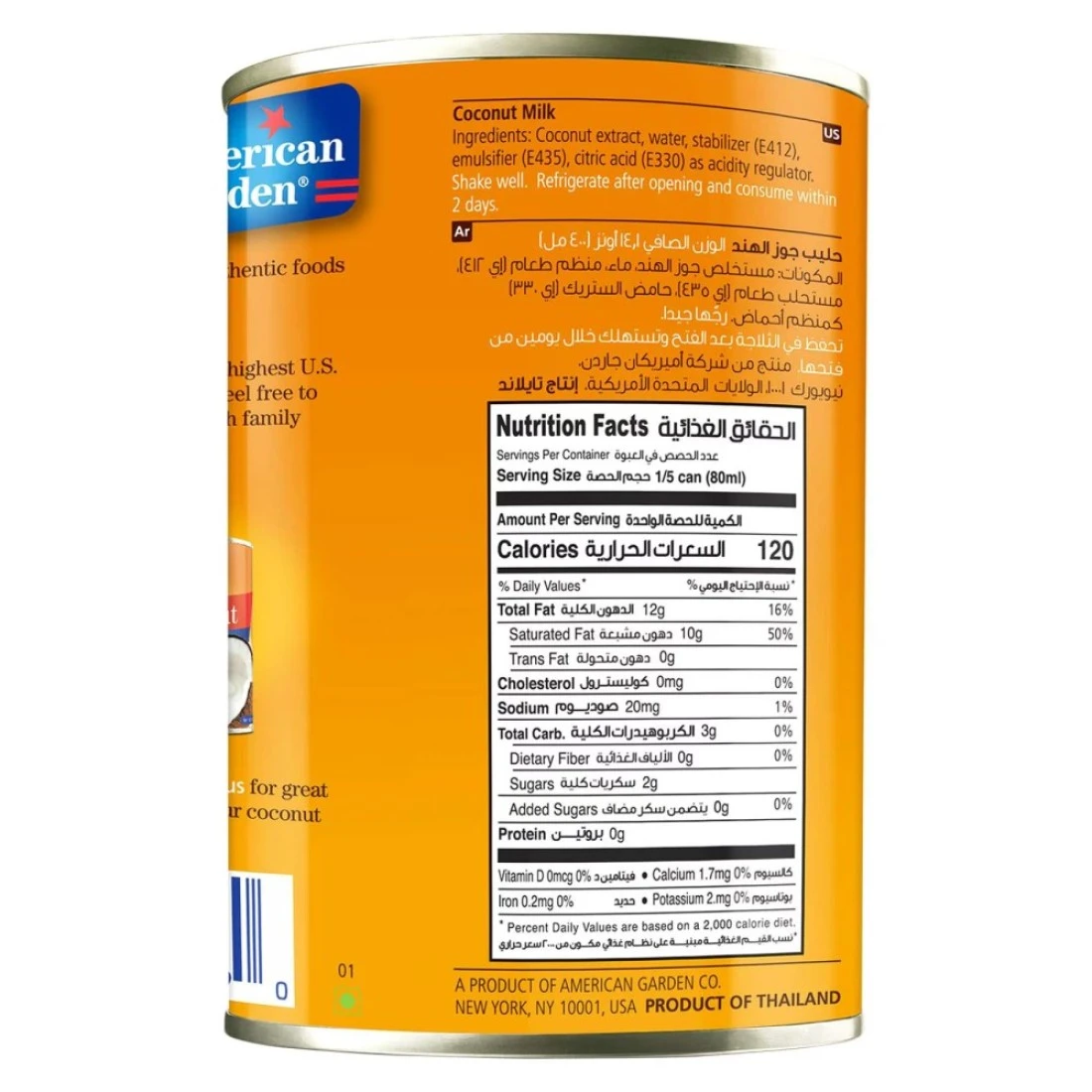 American Garden Coconut Milk 400ml offers an authentic and smooth taste. This versatile canned coconut milk is a great addition to your vegan recipes from curries to smoothies enhancing their taste and aroma with a subtle hint of coconut. Our convenient 400ml packaging ensures the authentic coconut milk flavour can be preserved. Surprise your family or guests with homemade meals that are deliciously made with American Garden Coconut Milk. It's also delicious in desserts and sweet dishes such as pies and puddings. American Garden brings you premium quality foods from the United States and around the world. Our wide range of authentic foods is perfect for sharing with friends and family.