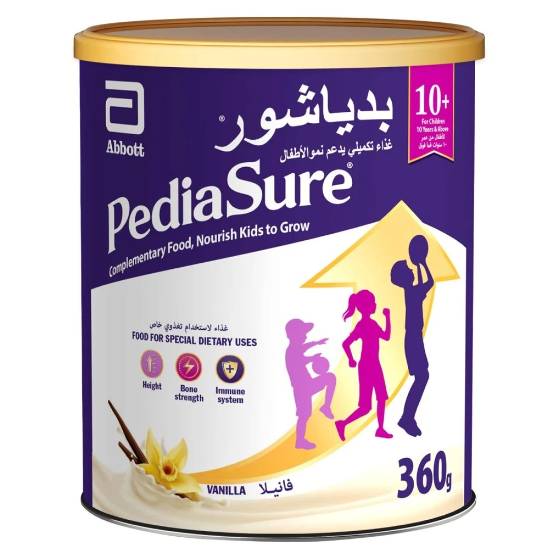 Abbott PediaSure Complementary Food for Children Vanilla is a nutritional supplement specially formulated for children aged 10 years and above. It provides essential nutrients, vitamins, and minerals that support growth and development. The vanilla flavour makes it a delicious and convenient option for picky eaters. This 360g pack is ideal for parents who want to ensure their children are getting the necessary nutrients for a healthy diet.