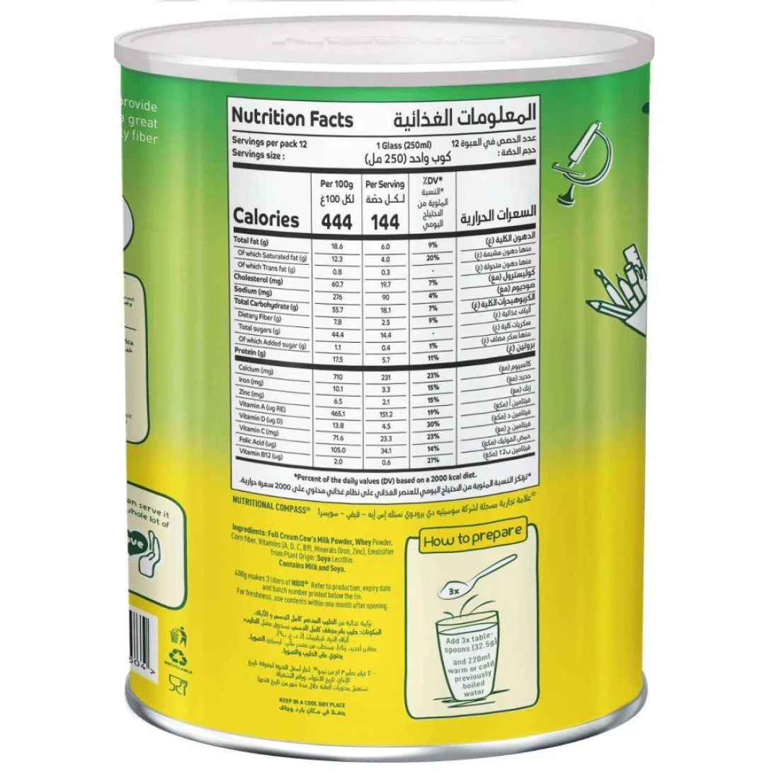 - Rich in Essential Nutrients: Nestle Nido Fortified Milk Powder is packed with vitamins and minerals, including Vitamin A, C, D, and E, essential for overall growth and development
