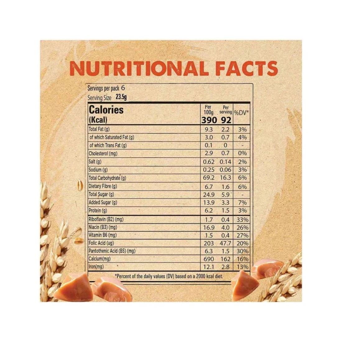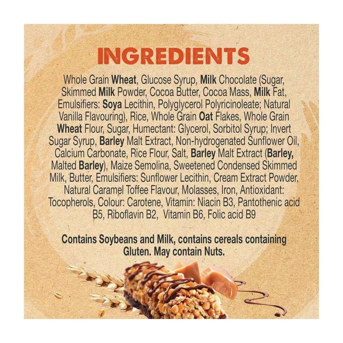 - Each 23.5g bar is packed with wholesome ingredients, providing a crunchy texture and a rich caramel flavour