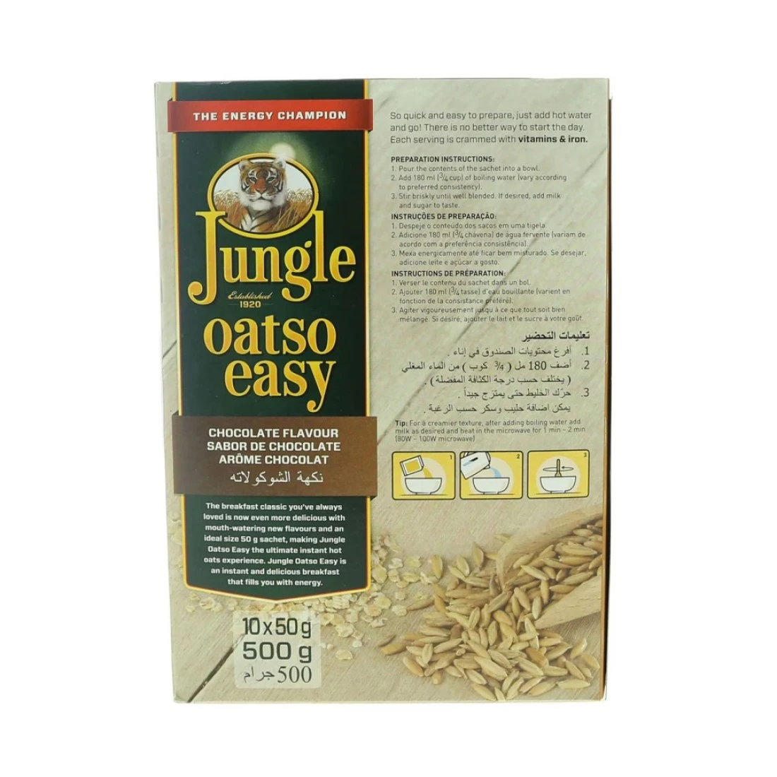 Jungle Oatso Easy Chocolate Flavour Oats 500g is a delicious and convenient breakfast option. This quick and easy-to-prepare oats is made with nutritious ingredients like oats natural cocoa powder and cocoa butter to provide a healthy and tasty breakfast. with no added sugar or preservatives this treat is the perfect way to start your day. Enjoy its delicious chocolatey taste and creamy texture today.