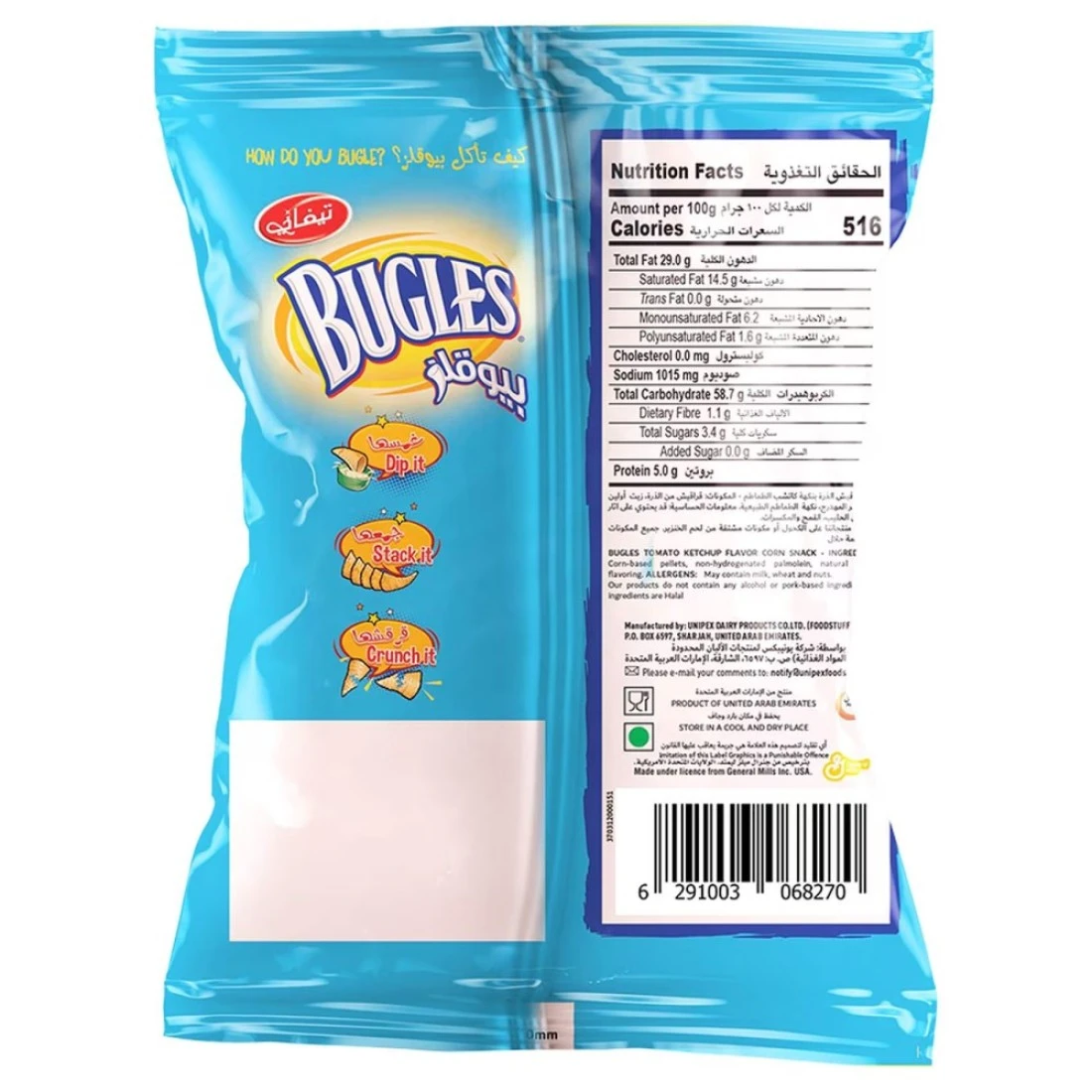Tiffany Bugles Ketchup Chips are a popular snack option for those who love the tangy and savoury taste of ketchup. These chips are made from selected potatoes that are thinly sliced and then seasoned with the iconic ketchup flavour. Filled with crispy crunchy chips that offer a burst of tomatoes goodness in every bite. Whether enjoyed on their own or paired with your favourite dip Tiffany Bugles Ketchup Chips are a delicious and satisfying snack option.