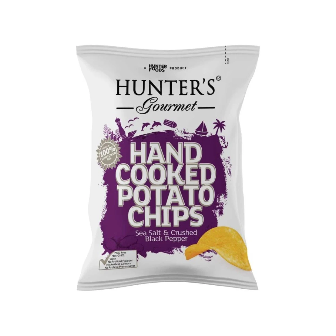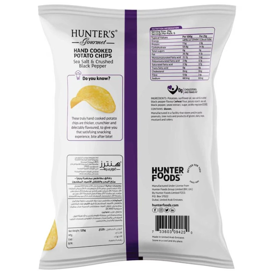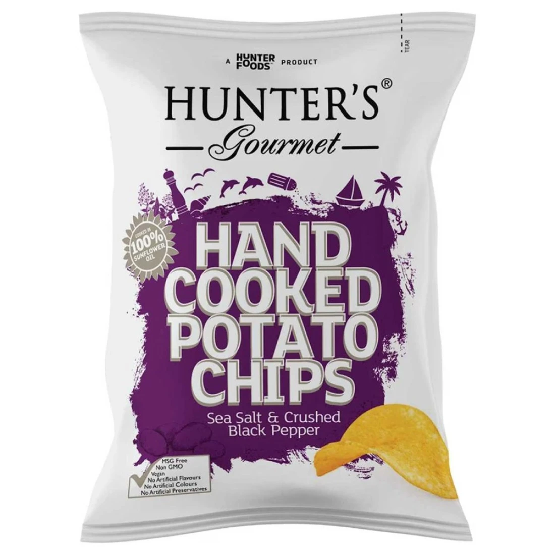 Hunter's Gourmet Sea Salt and Crushed Black Pepper Hand Cooked Potato Chips, 125g
