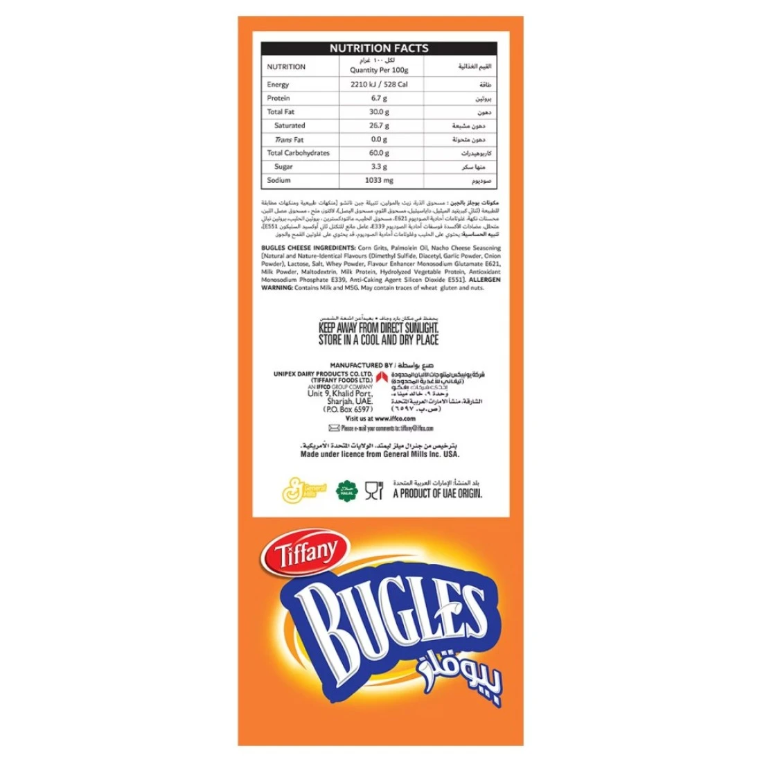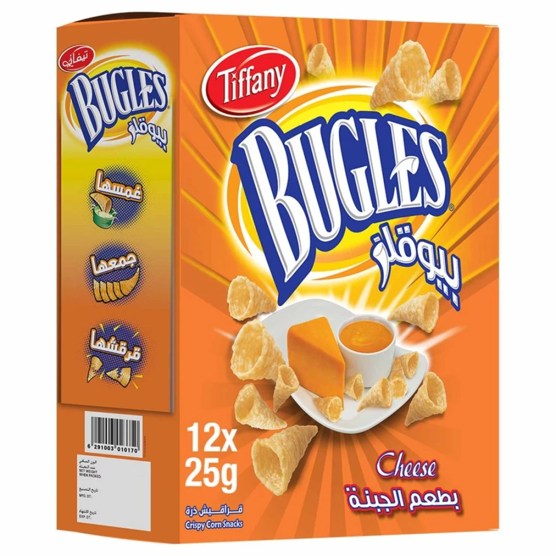 Tiffany Bugles Crispy Corn Cheese Snacks are a delicious and savoury snack option that will satisfy your cravings. These corn-based snacks are coated with a generous layer of cheese flavouring creating a perfect combination of crunchy texture and cheesy taste. Each bite is packed with intense flavour making it a great choice for snacking on its own or pairing with your favourite dip. Perfect for sharing with friends or enjoying on-the-go. Grab a pack of Tiffany Bugles Crispy Corn Cheese Snacks and elevate your snack time!