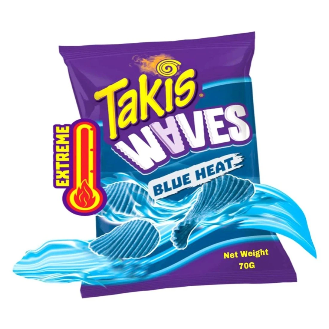 Takis Blue Heat Waves Hot Chili Pepper Flavoured Wavy Potato Chips, 70g