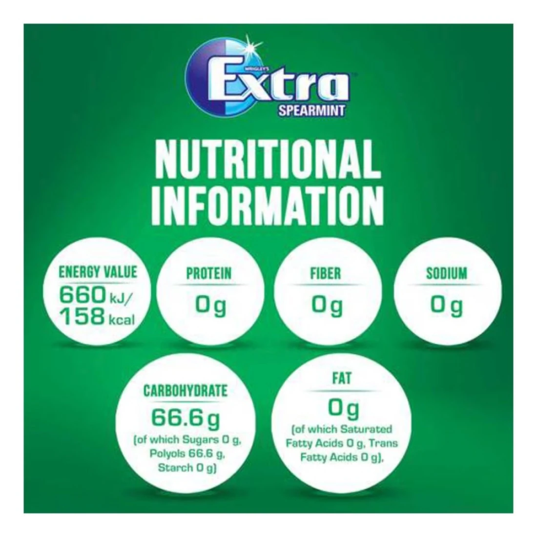 - Flavour: Wrigley's Extra Spearmint delivers a refreshing and long-lasting mint flavour, perfect for a quick pick-me-up