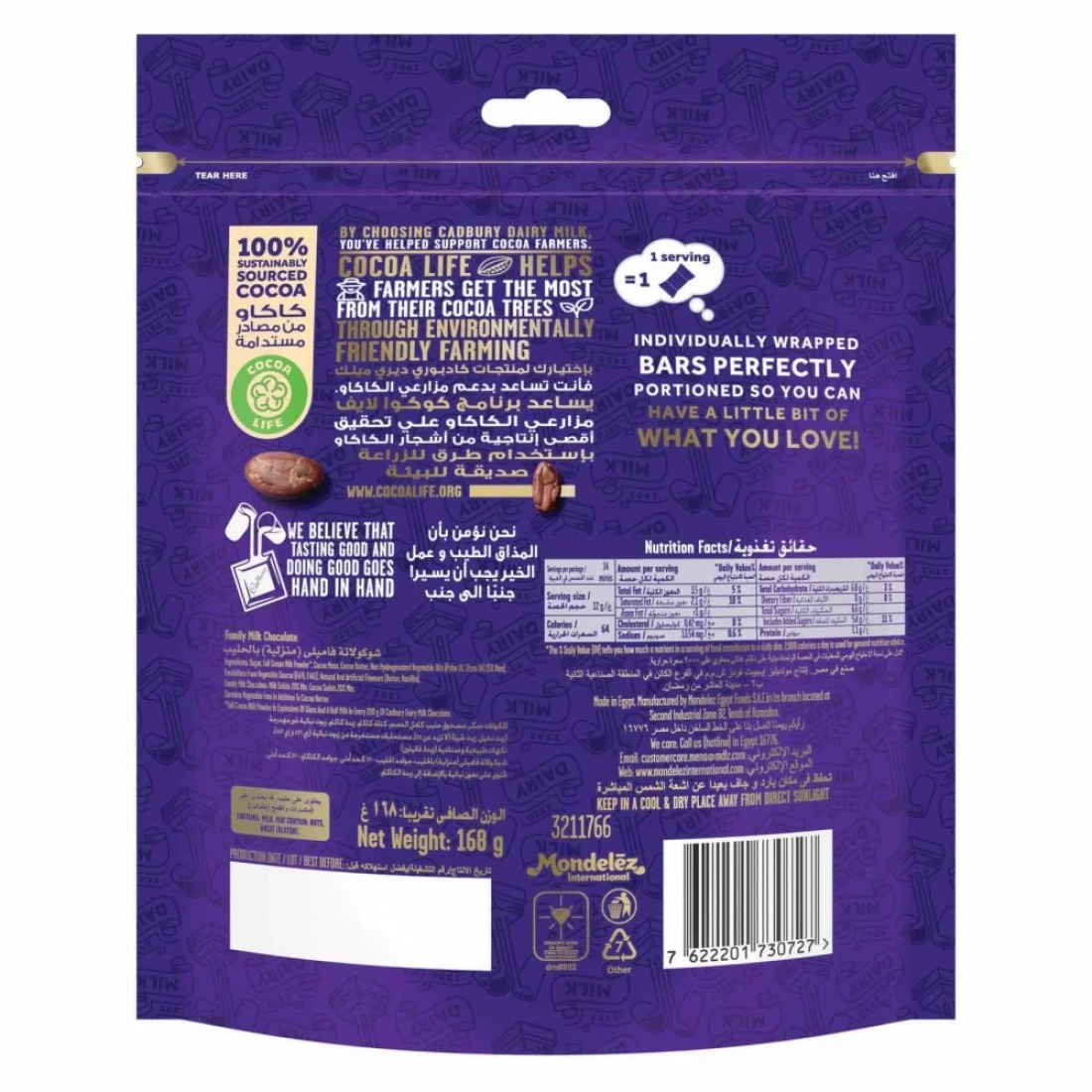 - This sharing pack contains a total weight of 168 grams of delightful chocolate