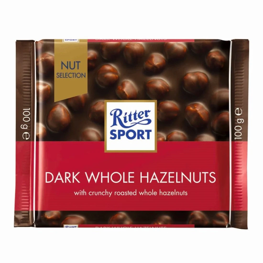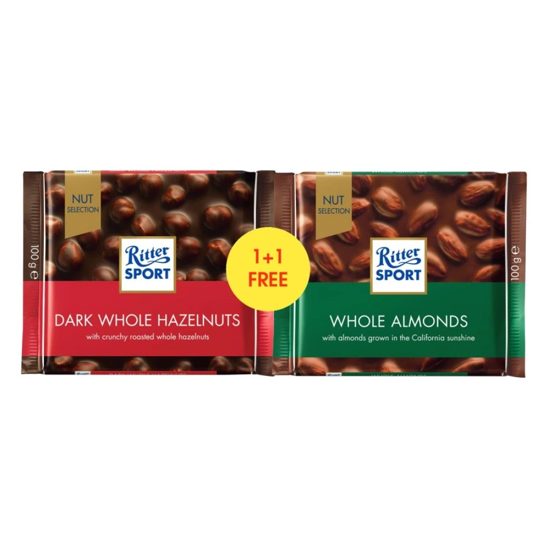 Ritter Sport Dark Whole Hazelnuts and Whole Almonds Chocolate Bar, 100g Pack of 2