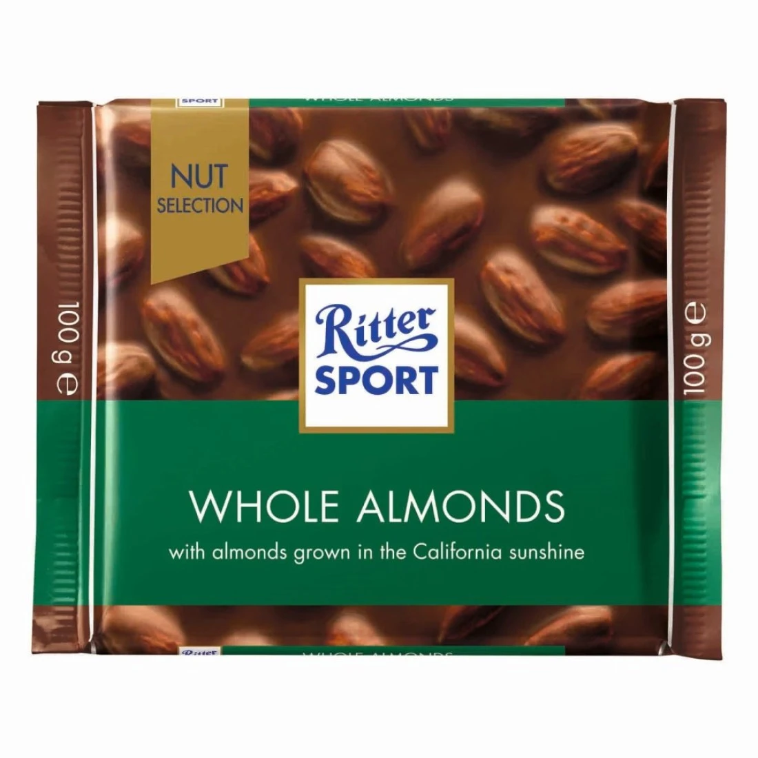 The Ritter Sport Dark Whole Hazelnuts and Whole Almonds Chocolate Bar 100g Pack of 2 is made with dark chocolate that contains whole hazelnuts and almonds for an indulgent treat. The perfect balance of creamy chocolate crunchy nuts and sweet dessert. Enjoy this special treat on its own or pair it with red wine coffee or tea. Each 100g bar contains finely chopped almonds and hazelnuts making it a delicious and nutritious snack. A delectable combination that is sure to please.