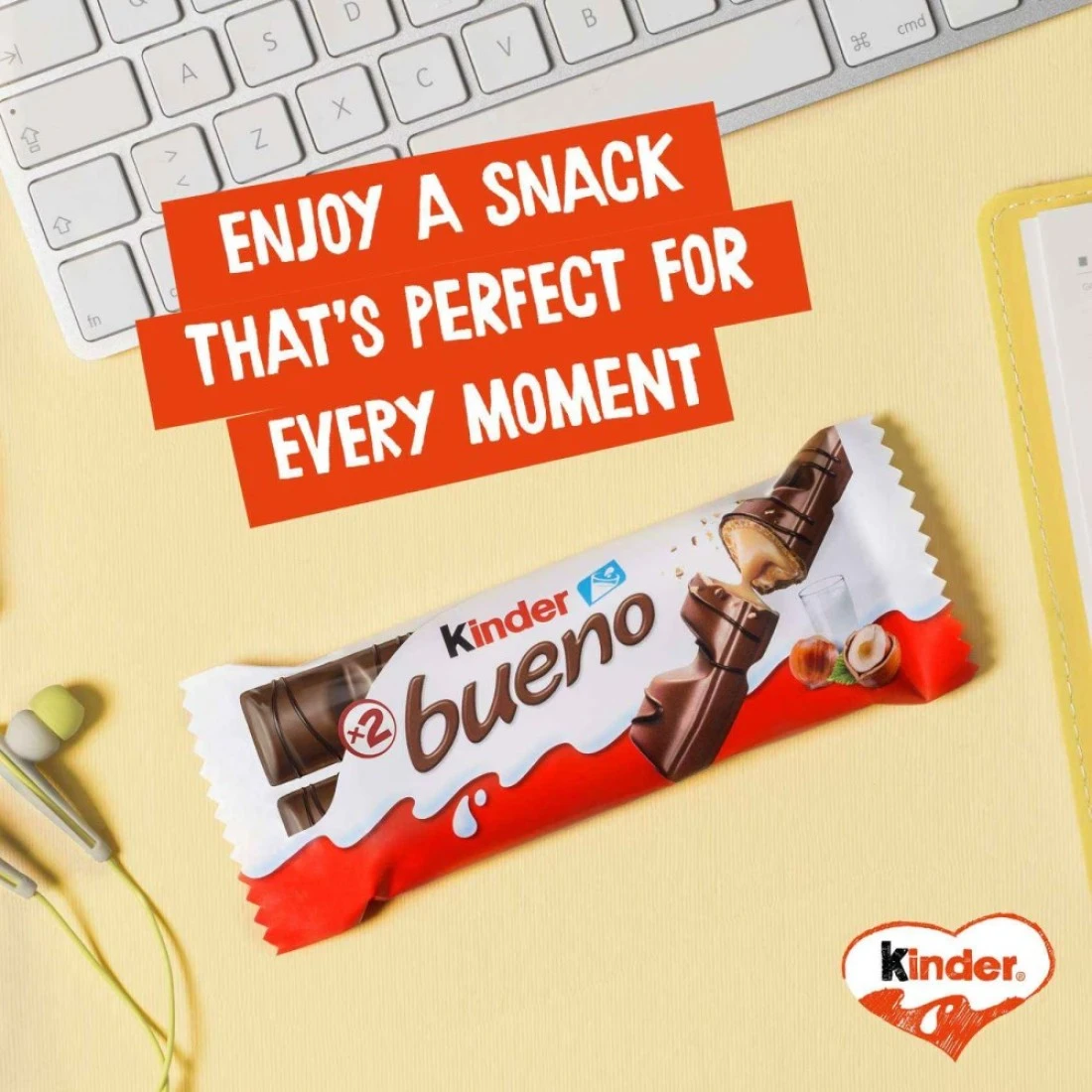 - Whether you’re looking to reward yourself after a long day, a quick bite in between meals, or simply giving into your sweet cravings, Kinder Bueno Mini is the perfect choice to elevate your everyday moments with a taste experience that is deliciously different