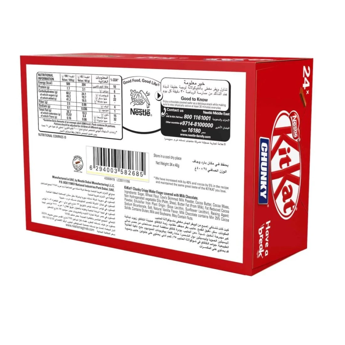 Nestle KitKat Chunky Chocolate Wafer Bar, 40g Pack of 24