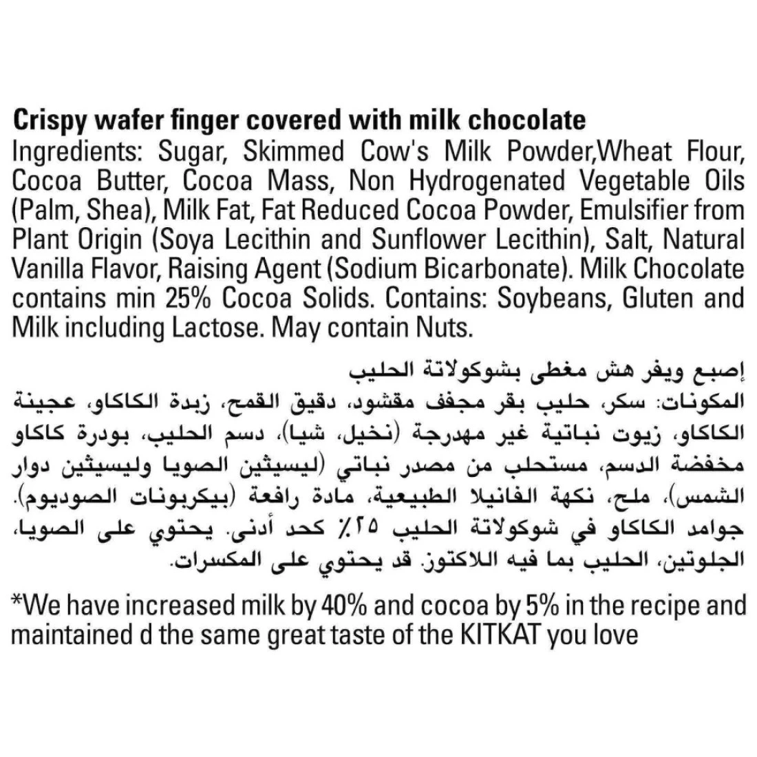 ingredients : Milk Chocolate (68.5%) [Sugar, Milk Solids (5.5%) And Emulsifier (Soya Lecithin)] And Water [Wheat Flour (Maida), Sugar, Edible Vegetable Oil (Palm Oil), Milk Solids, Cocoa Solids (1.3%), Emulsifier (Soya Lecithin), Salt, Raising Agent (500(Ii)) and Flour Treatment Agent (1101(I))]