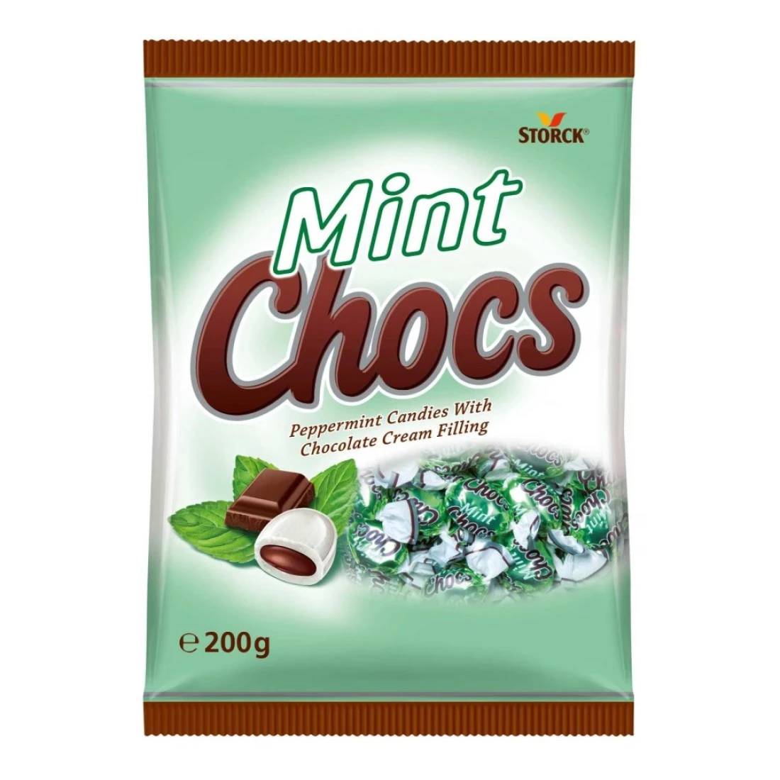 Storck Mint Chocs Peppermint Candy with Chocolate Cream Filling, 200g