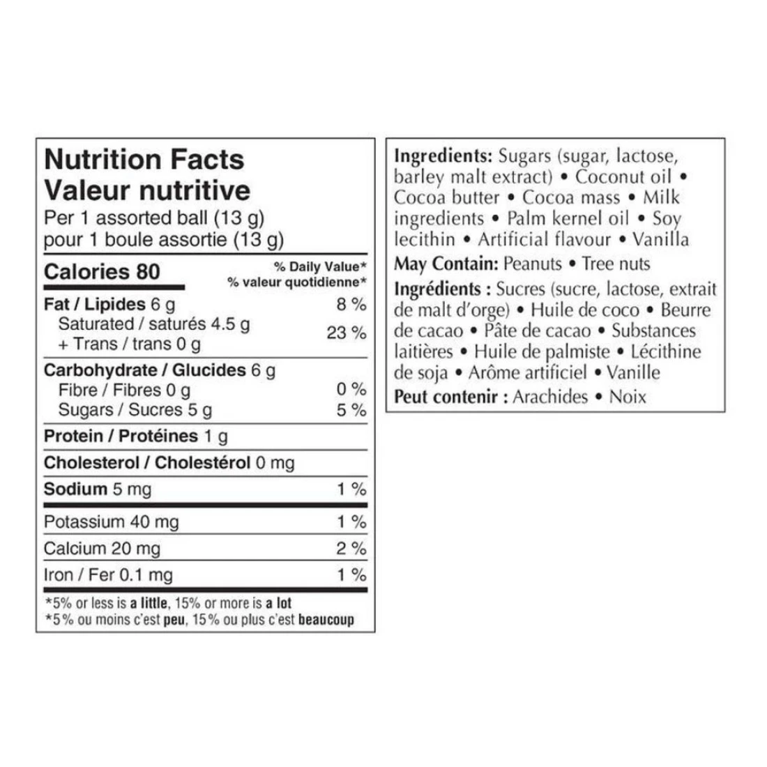 ingredients : Sugars (Sugar, Lactose, Barley Malt Extract), Coconut Oil, Cocoa Butter, Cocoa Mass, Milk Ingredients, Palm Kernel Oil, Soy Lecithin, Artificial Flavour: Vanilla