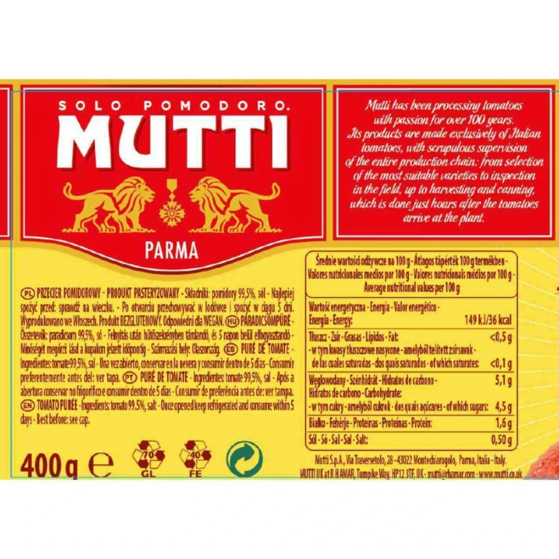 Mutti Passata Tomato Puree Paste, 400g