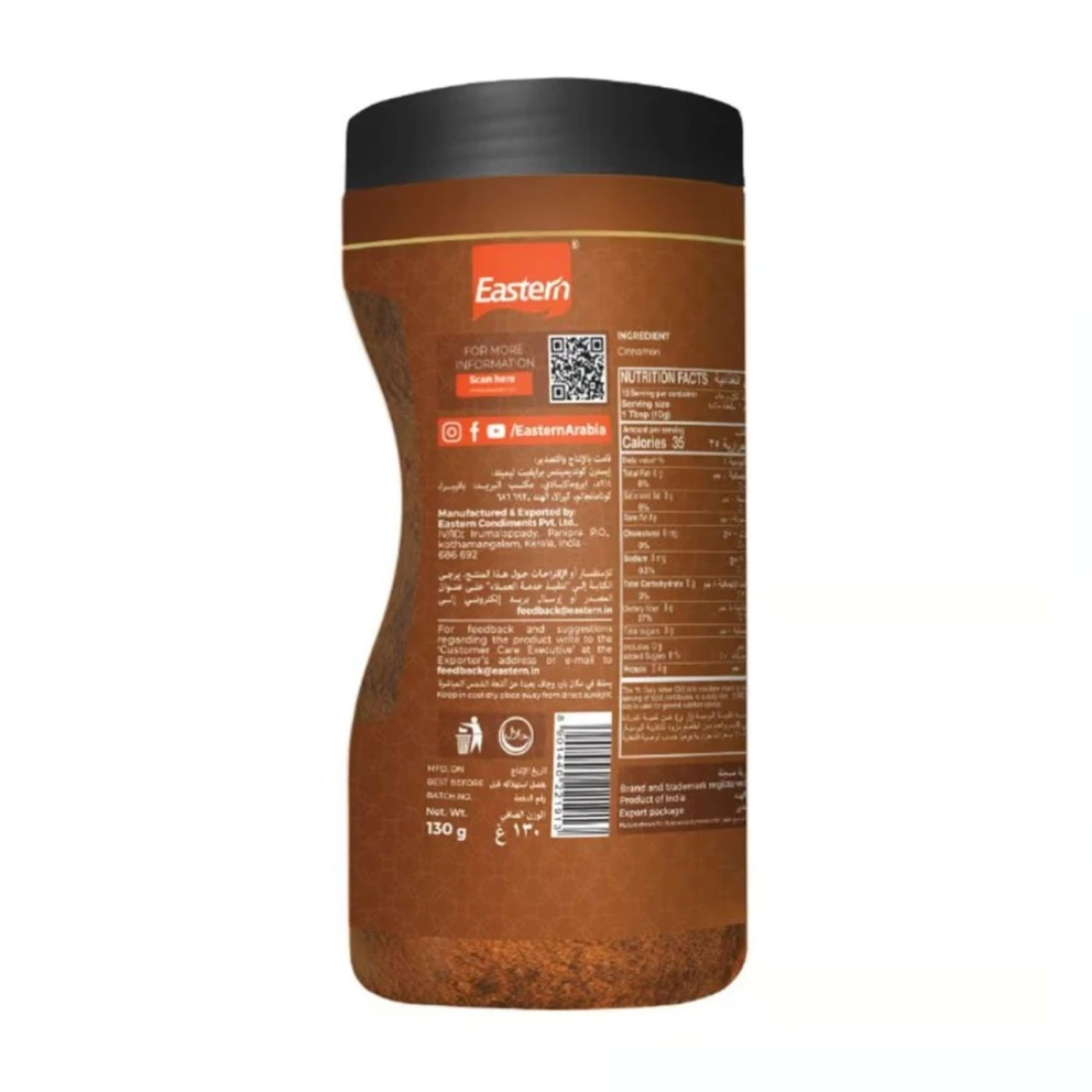 Eastern Cinnamon Powder is a high-quality spice that adds a warm and aromatic flavor to a wide variety of dishes. Made from ground cinnamon bark, this powder is commonly used in baking, cooking, and desserts. It has a sweet and slightly spicy taste, making it an essential ingredient in cinnamon rolls, apple pies, and hot beverages like mulled wine or spiced cider. Eastern Cinnamon Powder comes in a convenient 130g pack, ensuring you have enough to enhance the flavor of your favorite recipes.