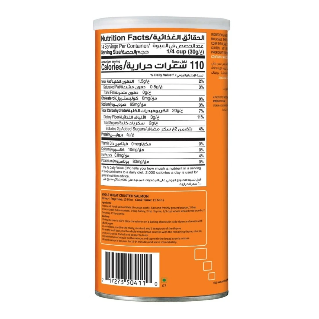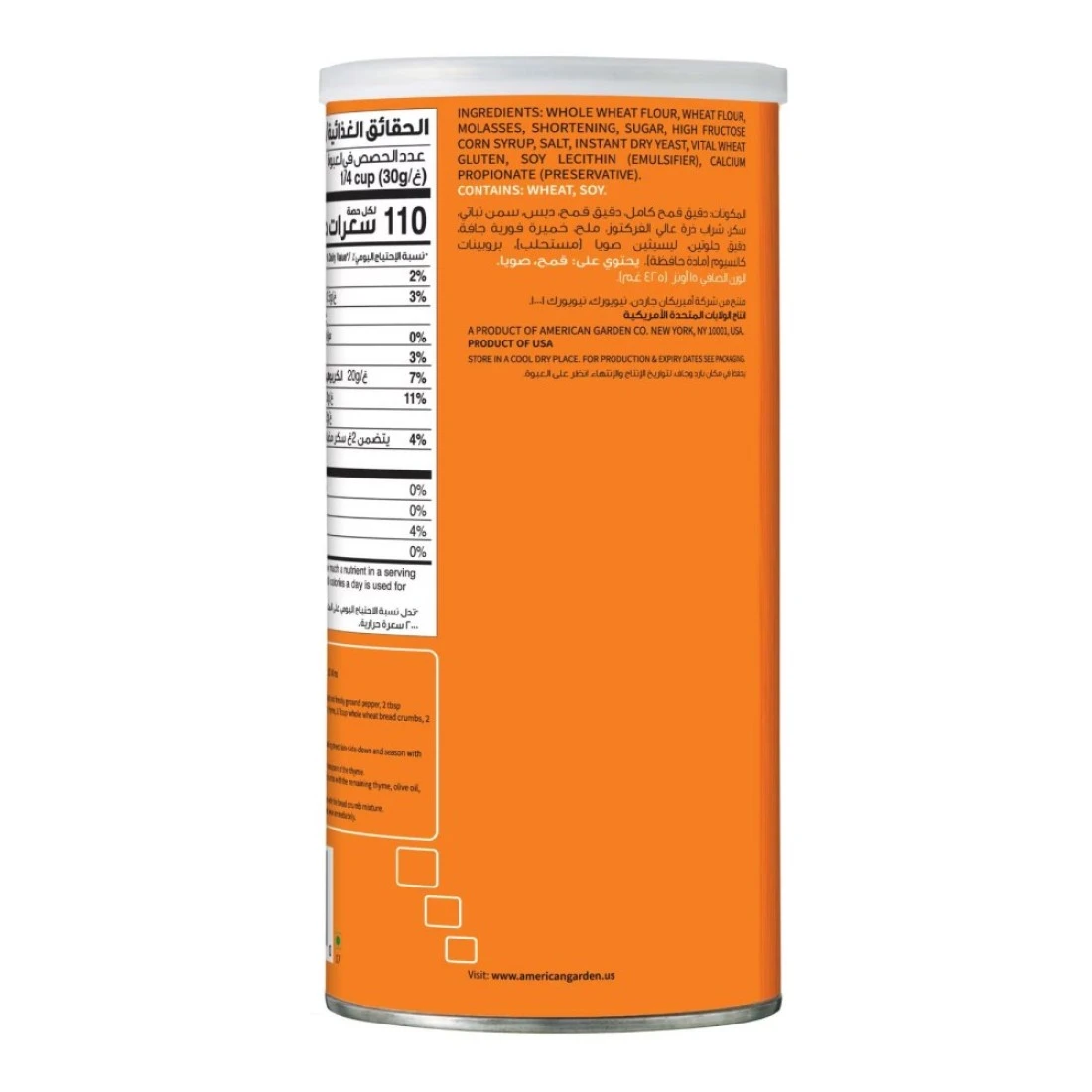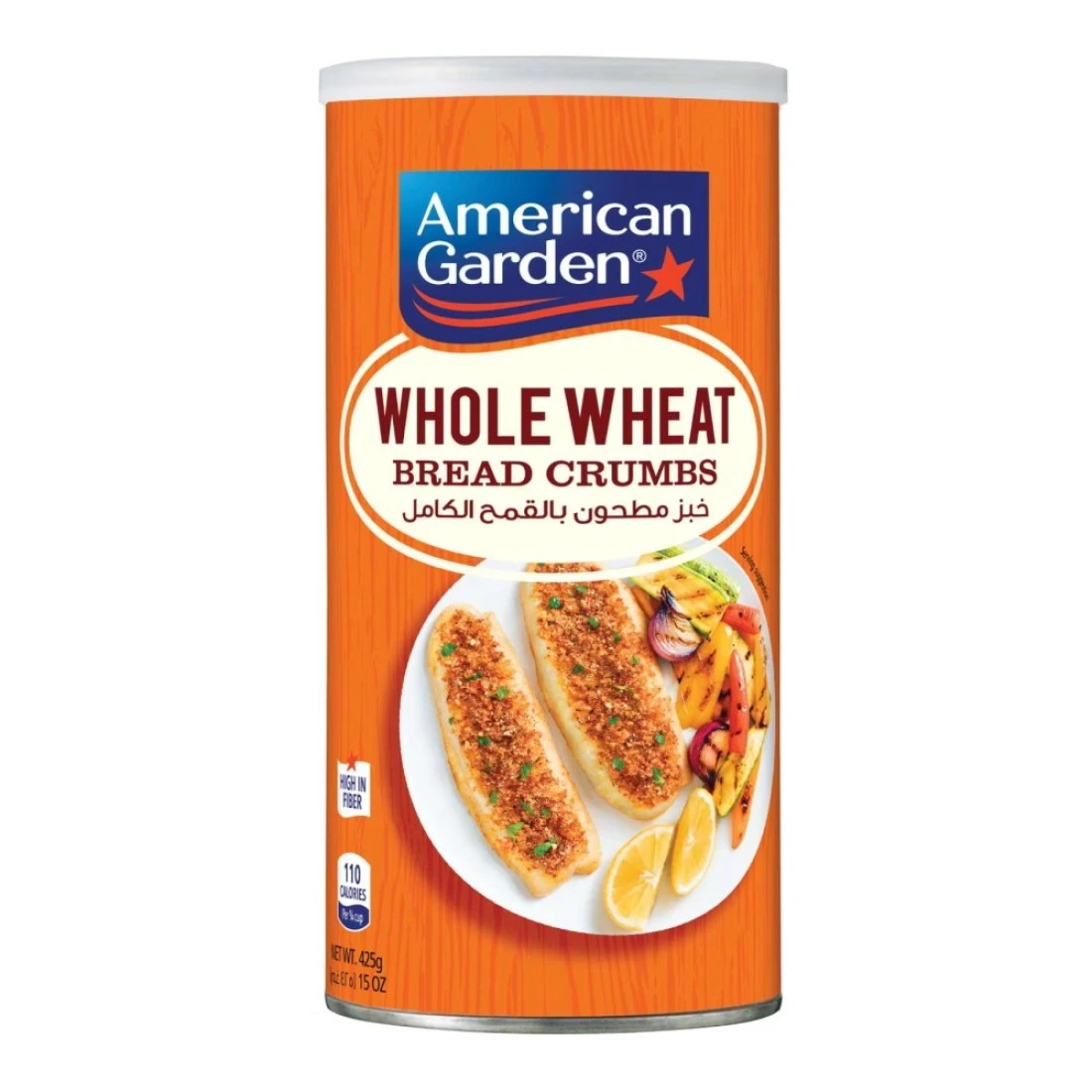 American Garden Whole Wheat Bread Crumbs 425g is made from bread that is dried and ground to create a fine texture and is perfect for adding a crispy coating to your favourite dishes. Whether you're frying chicken fish or coating vegetables these American Garden Breadcrumbs will enhance the flavour and texture of your meal. The resealable container ensures that you'll always have delicious bread crumbs on hand whenever you need them. American Garden brings you premium quality foods from the United States and around the world. Our wide range of authentic foods is perfect for sharing with friends and family.