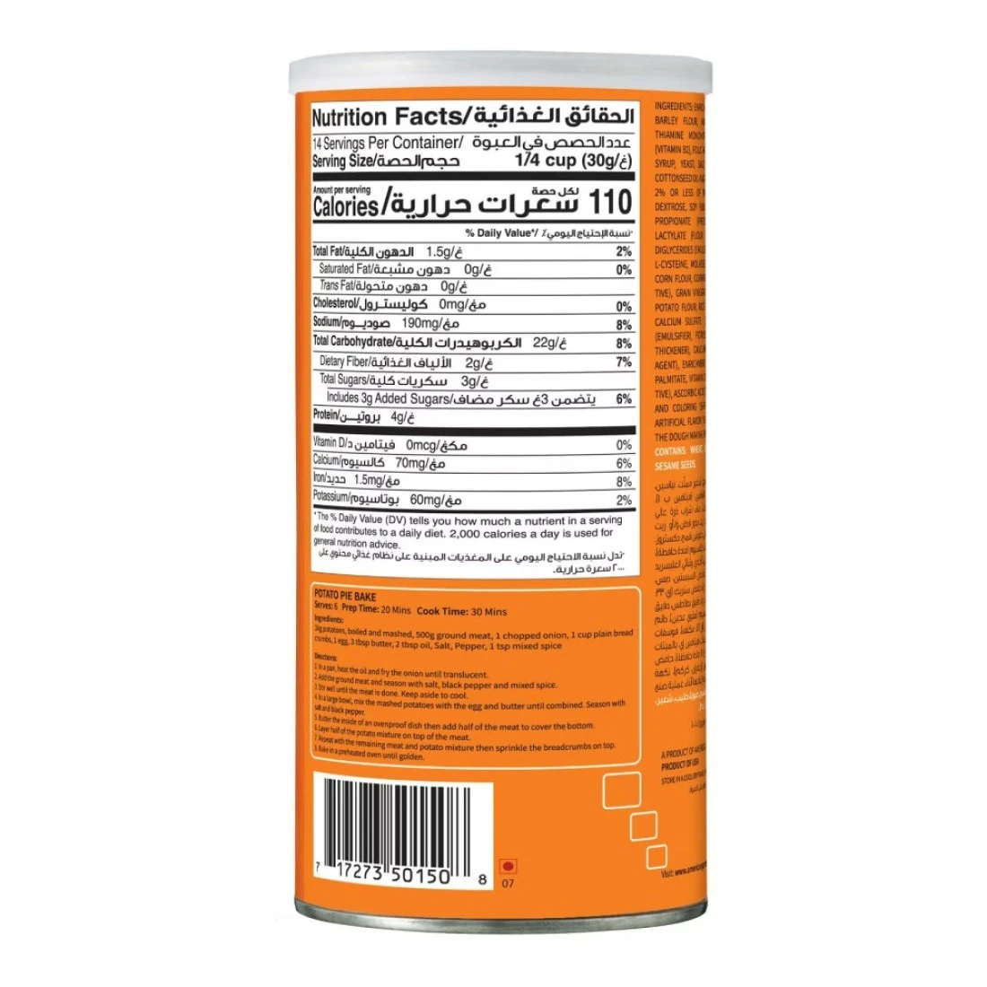 American Garden Plain Bread Crumbs 425g is made from bread that is dried and ground to create a fine texture. It is a versatile ingredient that can be used for breading and coating a variety of foods such as chicken fish and vegetables. Enhance the flavour of your favourite meal with American Garden Breadcrumbs. The container is resealable to ensure you can use these delicious breadcrumbs at any time. American Garden brings you premium quality foods from the United States and around the world. Our wide range of authentic foods is perfect for sharing with friends and family.