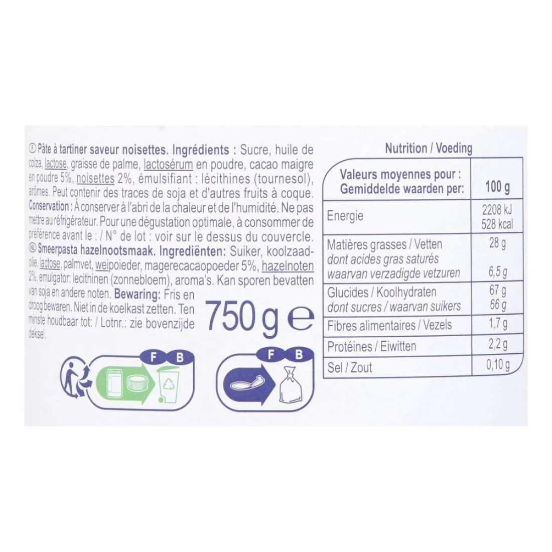 ingredients : Sugar, Rapeseed Oil, Lactose, Palm Fat, Whey Powder, Lean Cocoa Powder 5%, Hazelnuts 2%, Emulsifier: Lecithins (Sunflower), Flavourings.