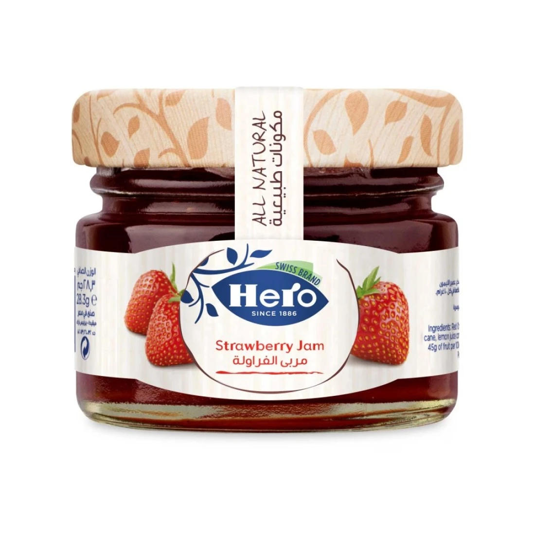 Hero Strawberry Jam 28.3g is an all-natural delicious jam made from real strawberries. Sweetened with only fruit juice and nothing artificial this jam is ideal for spreading on toast adding to yogurt ice cream oatmeal or any other food item. It's Non-GMO free from preservatives and full of naturally occurring antioxidants vitamins and magnesium.