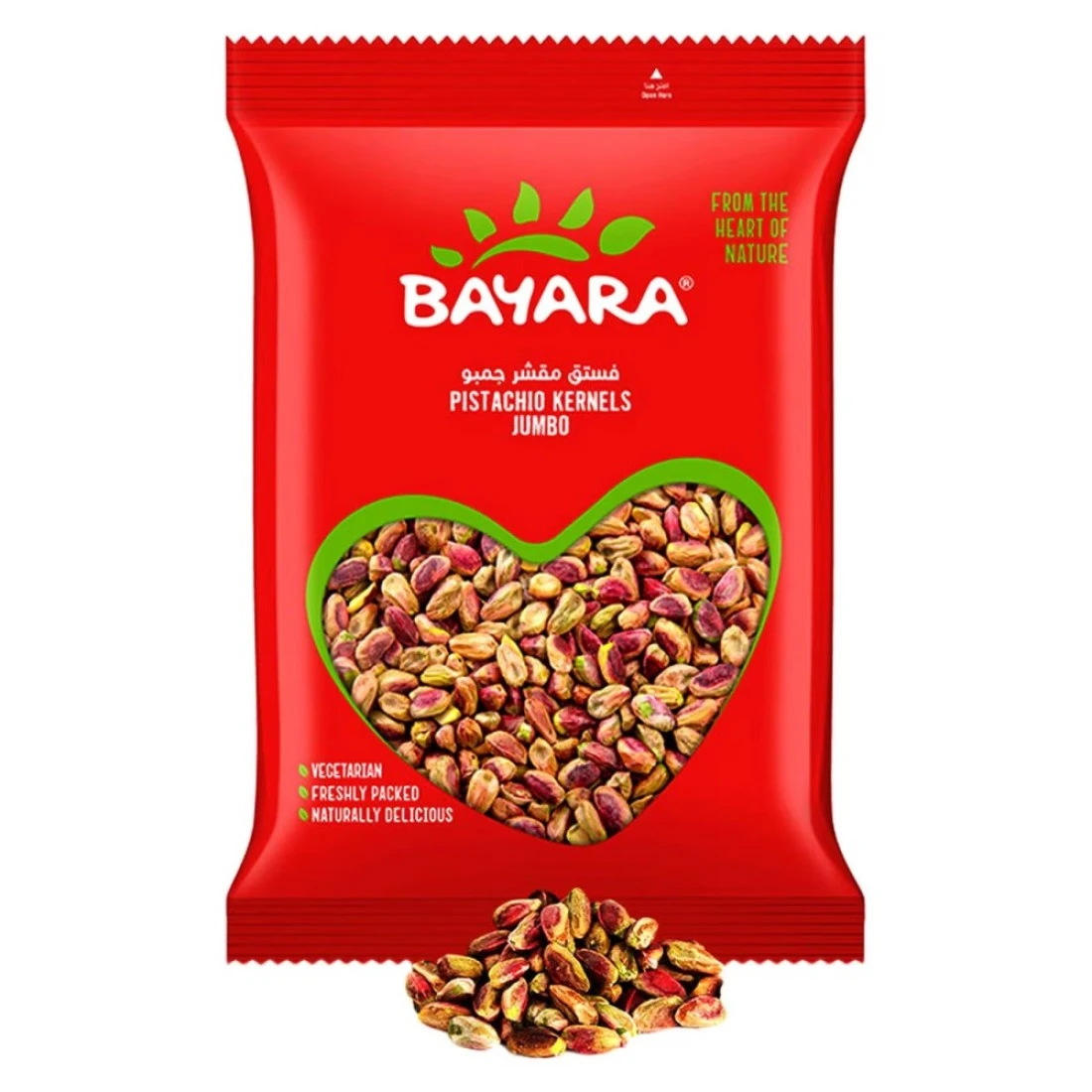 - With an intense nutty flavor and a buttery note, Bayara pistachios are ideal for snacking and cooking. From salad to ice cream, be sure to have your full of flavor pistachios as your main ingredient.