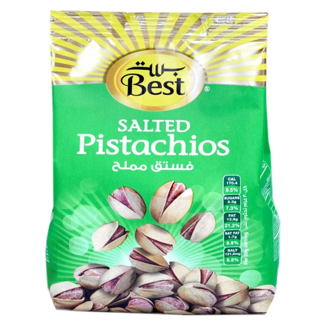 The Best Salted Pistachios are a delicious and nutritious snack option. These premium pistachios are carefully selected and roasted to perfection then lightly salted to enhance their natural flavour. Each bite offers a satisfying crunch and a rich buttery taste that is sure to delight the taste buds. Packed in a convenient bag these salted pistachios are the perfect on-the-go snack or addition to any party platter. Whether enjoyed as a midday pick-me-up or a tasty topping for salads and desserts these Best Salted Pistachios are a must-have for any nut lover.