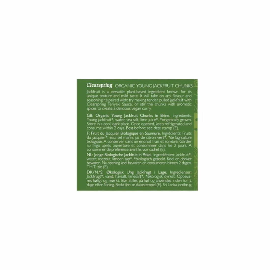 ingredients : Young Jackfruit, Water, Sea Salt, Lime Juice.