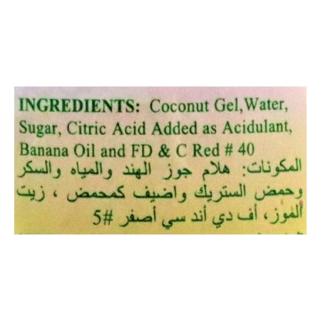ingredients : Coconut Gel, Sugar, Citric Acid, Banana Oil