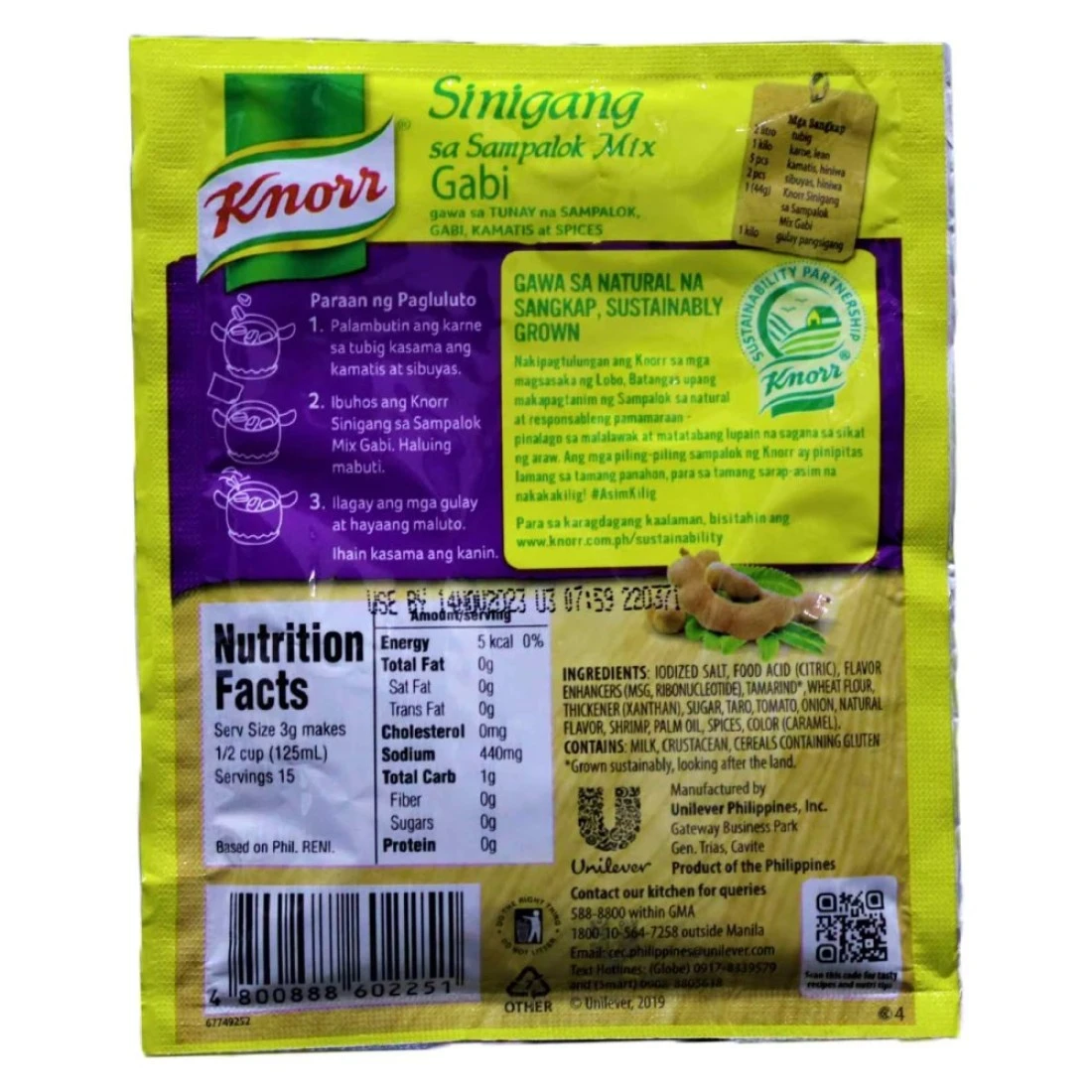 Knorr Sinigang Na May Gabi Mix is a traditional Filipino soup mix that makes cooking sinigang a popular sour soup dish easy and convenient. This mix contains real tamarind and gabi (taro) to give the soup its signature tangy and creamy taste. Just add your choice of vegetables and meat and simmer until cooked to create a delicious and authentic sinigang dish that is perfect for any Filipino meal.
