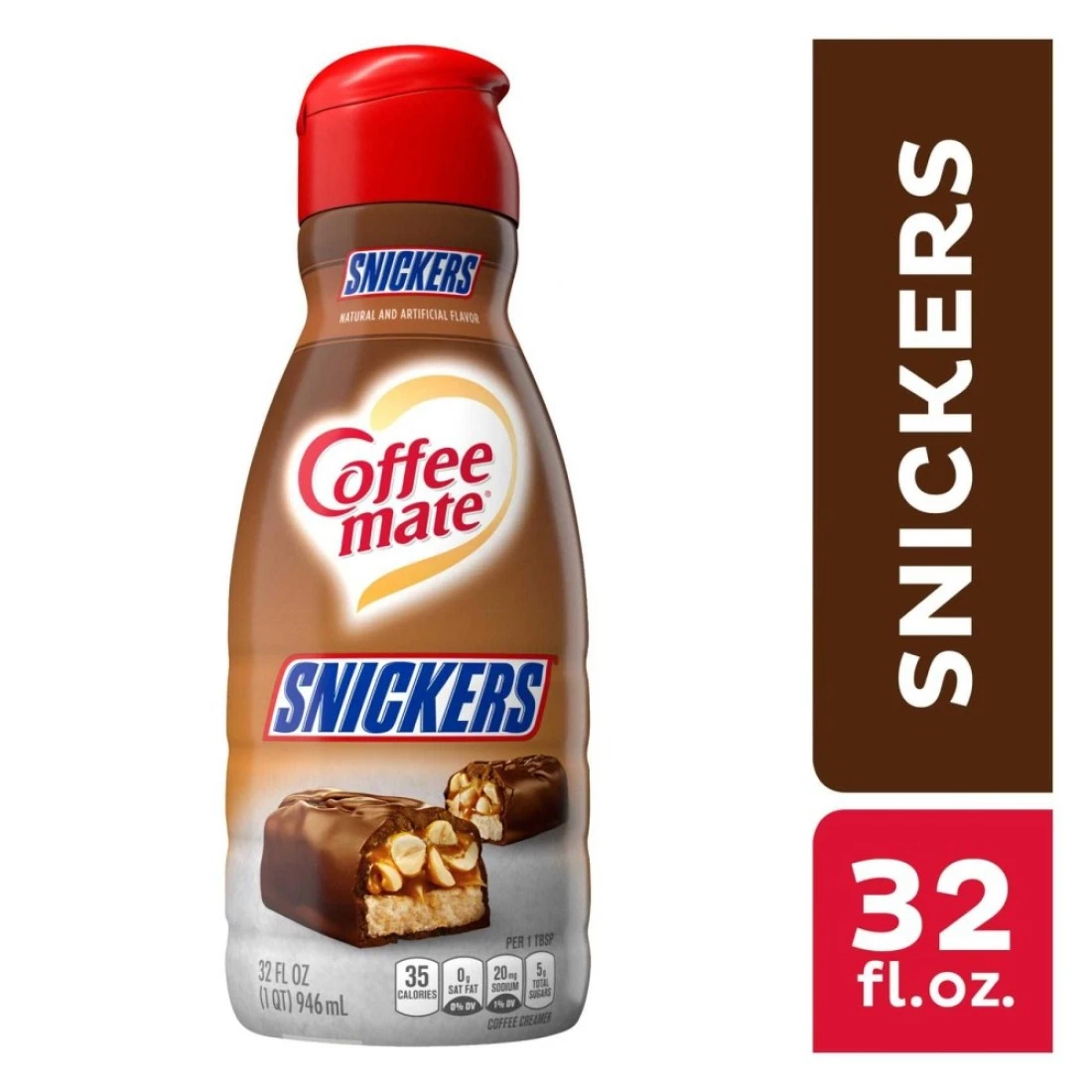 - Transform the coffee you like into the coffee you love with coffee mate snickers flavoured coffee creamer